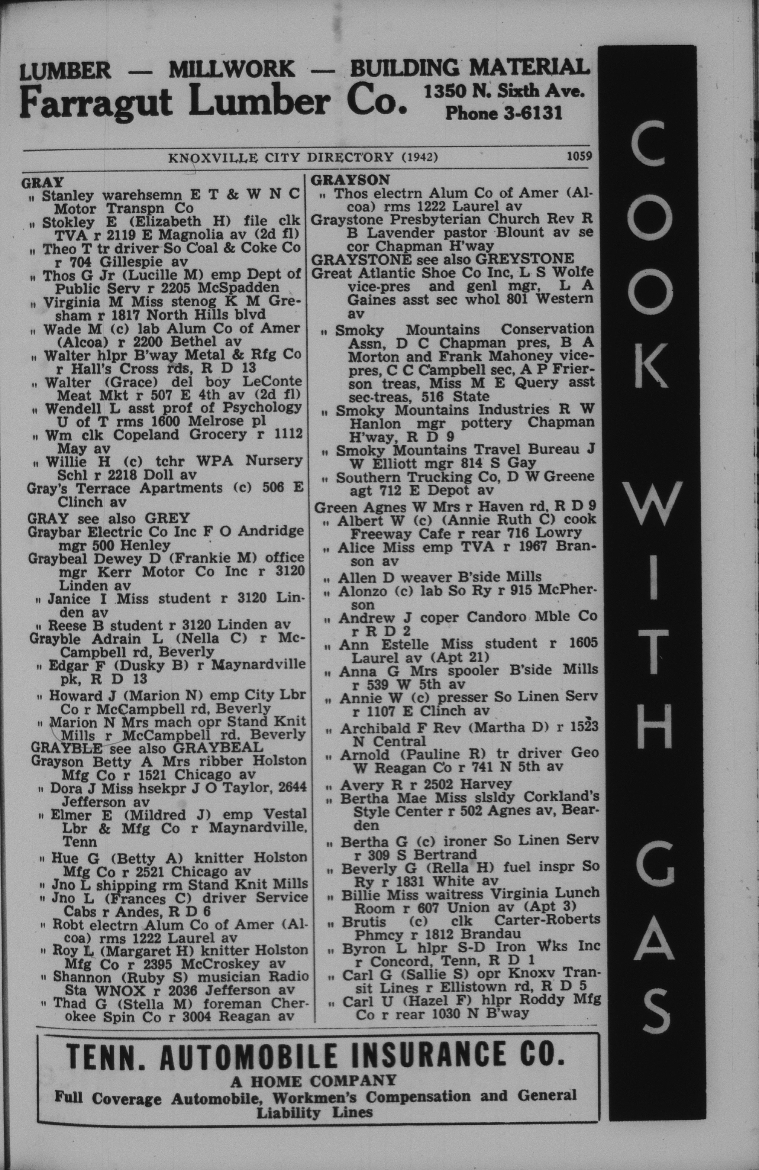 1942, City Directory, Knoxville, Tennessee, page 1060Green surname |