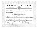 Marriage Record | ![]() ![]() To any Minister of the Gospel having the care of Souls, or to any Judge, Chancellor, or Justice of the Peace of said County, Judge or Chancellor, the Governor, the Speaker the State Senate, the Speaker of the House of Representatives, Greeting: You or all of you are hereby authorized to solemnize the Rite of Matrimony between Harold Eugene Huffman and Ada Louise Yadon of your County agreeably to the direction of an Act of Assembly in such cases made and provided; Provided always, That the ceremony be performed in this County; otherwise these shall be null and void, and shall not be accounted any license or authority to you, or either of you, for the aforesaid, more than though the same had never been prayed or granted, etc. Given at the Clerk's Office of said County the 4 day of May, 1944. (signed) Iva B. DeLozier, D.C. R. D. Hunnicutt, Clerk. No. 85, Marriage License, Harold Eugene Huffman and Ada Louise Yadon, Issued May 4, 1944. R. D. Hunnicutt, Clerk. I solemnized the Rite of Matrimony between the within-named parties on the 14th day of May 1944. John A. Gates, Minister of the Gospel. Returned 19 day of May 1944. R. D. Hunnicutt, Clerk. Recorded in Marriage Record, book 32, page 85.6,5 |