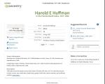 1930 Census | ![]() Household of his father Arlo Ream Huffman Fort Wayne, Ward 6, Wayne Township, Allen County, Indiana, 10 Apr 1930. page 269b, 1111 Lexington, dwelling number 309, family number 310. Harold E. 7, son, male, single, white, born OH, father and mother born OH.8 |