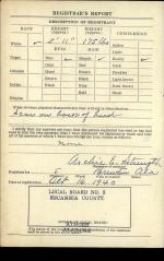 Military Draft Registration | ![]() ![]() 1. Name Orval Andrew Nall 2. Residence - 1323 Yellowhammer Drive, Mobile, Mobile County, Ala. 3. Mailing address - same. 4. Telephone - 5. Age in years - 18, Date of Birth - April 24, 1927 6. Place of birth - Jay, Fla. 7. Person who will know your address - Mrs. Joyce Nall (wife) 1323 Yellowhammer Drive, Mobile, Ala. 8. Employer - Seaman 9. Place of employment - 10. (signed) Orval Andrew Nall Race- White Height - 5' 11'' Weight - 175 lbs Eyes - blue, hair - blonde, complexion - ruddy Scar on back of head (signed) Archie E. Strength Registrar for 5 precinct, Brewton, Ala, Oct 16, 1940 Local Board No. 2, Escambia County.2 |