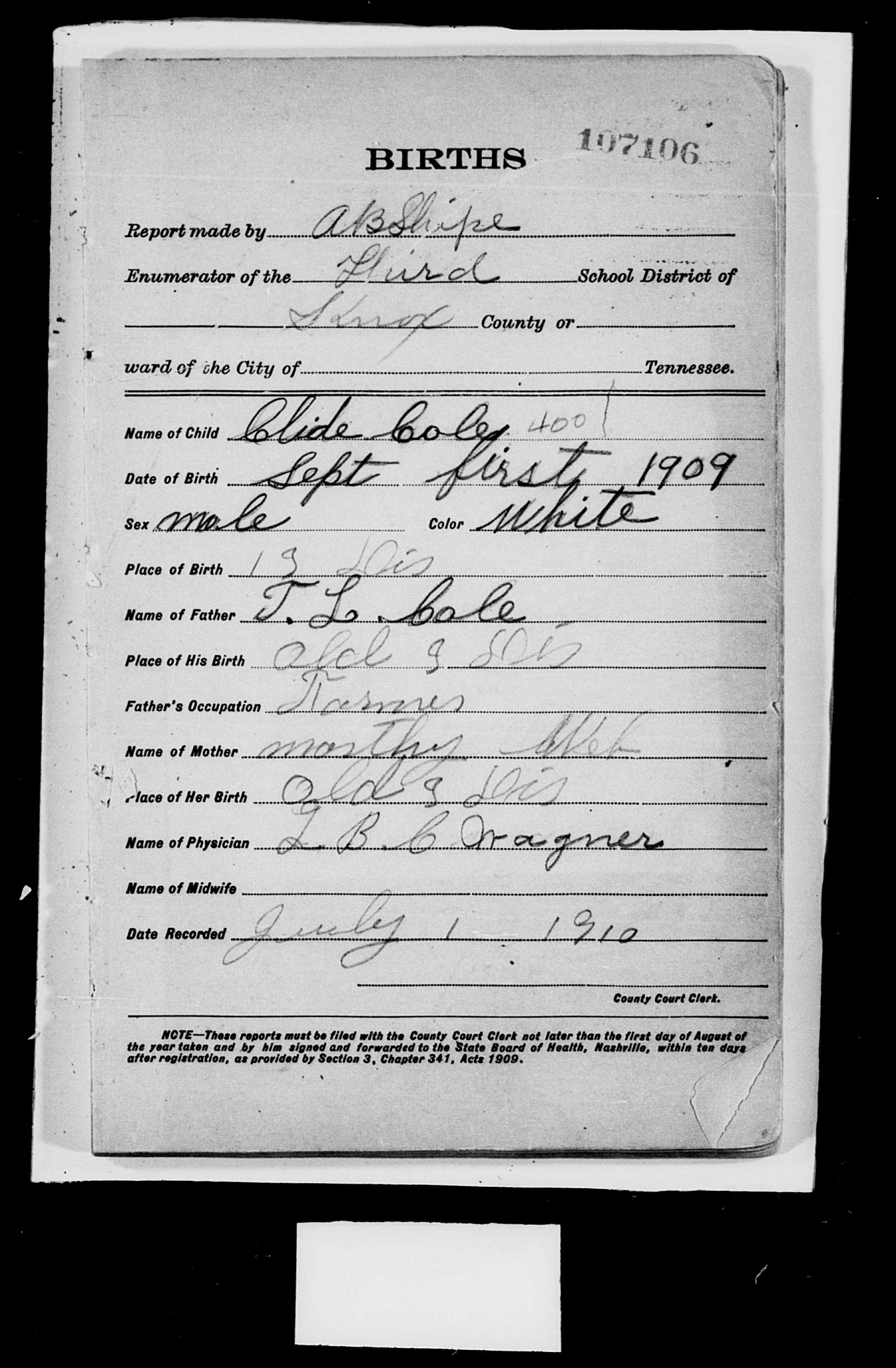 - [S2674] Death Certificate: Yadon, Bayard; Certificate 18852; Knox County, Tennessee, 1933; ancestry.com (Tennessee, Death Records, 1908-1958); viewed 18 May 2013.
