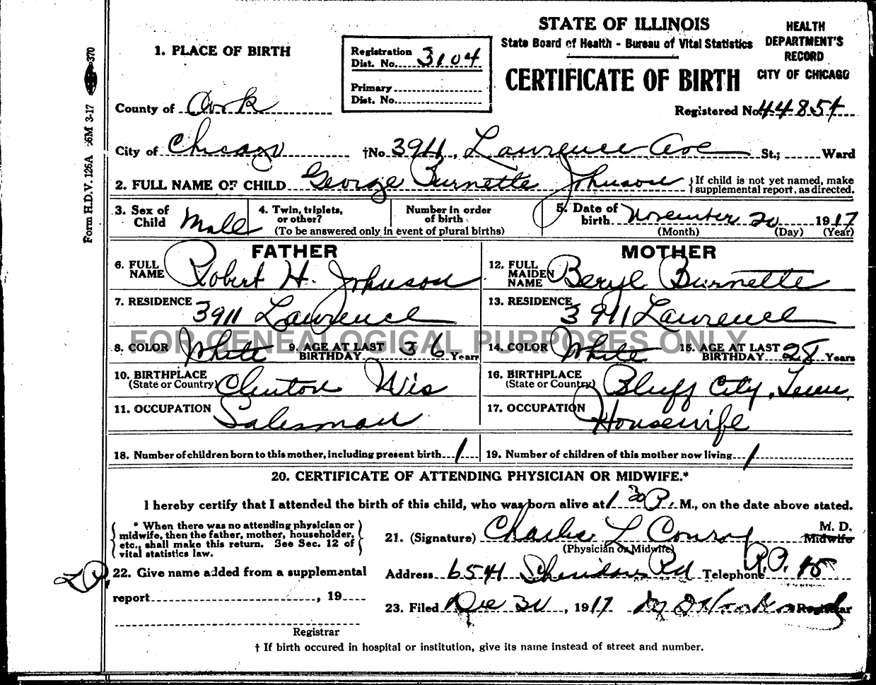 George Marion Cox was born June 16, 1919, died Nov 21, 1924