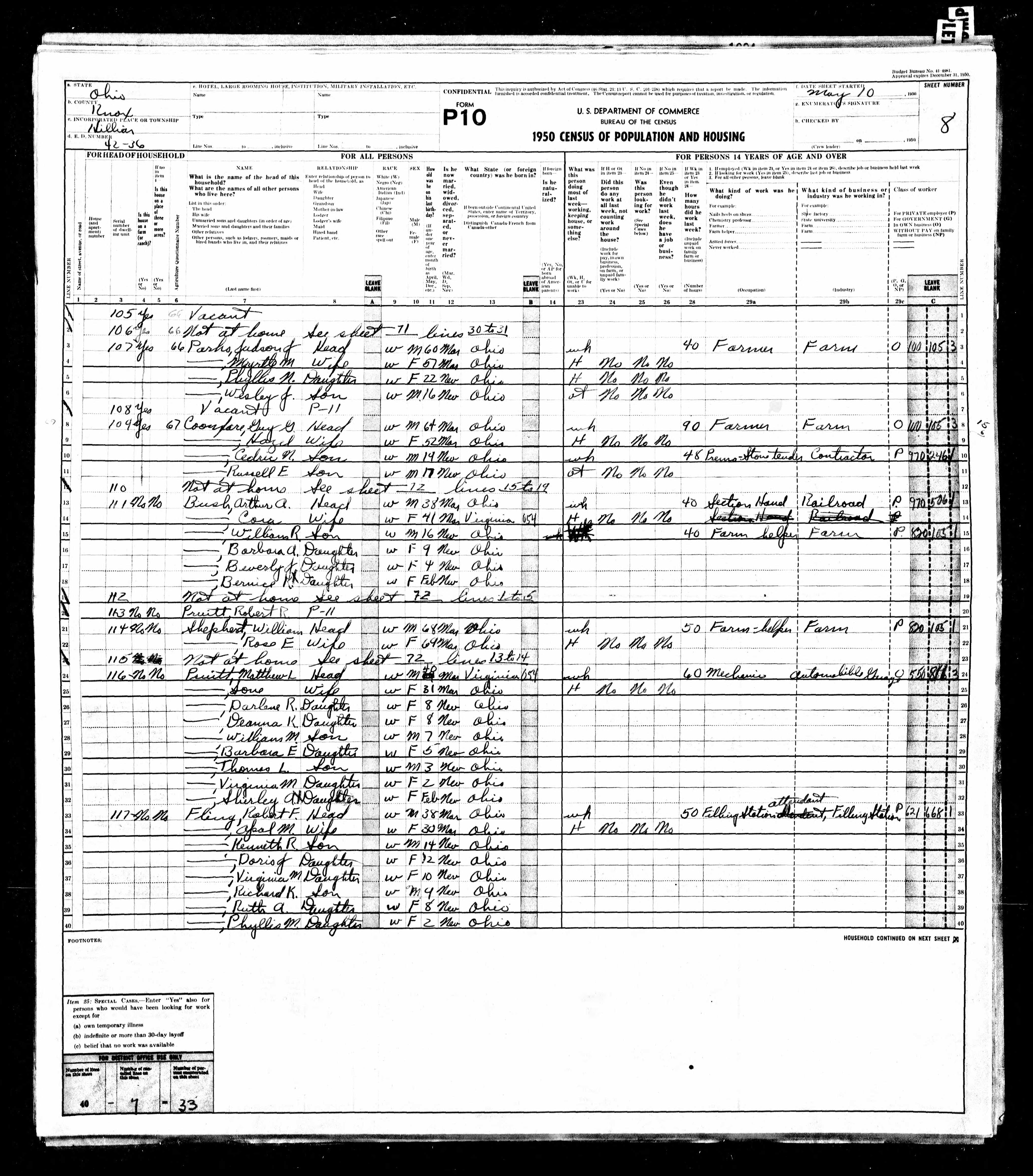 - [S3236] U.S. Federal Census: 1950, Delaware County, Ohio, Enumeration District 21-44, sheet 018, ancestry.com (1950 U.S. Census) viewed on 4 October 2023.