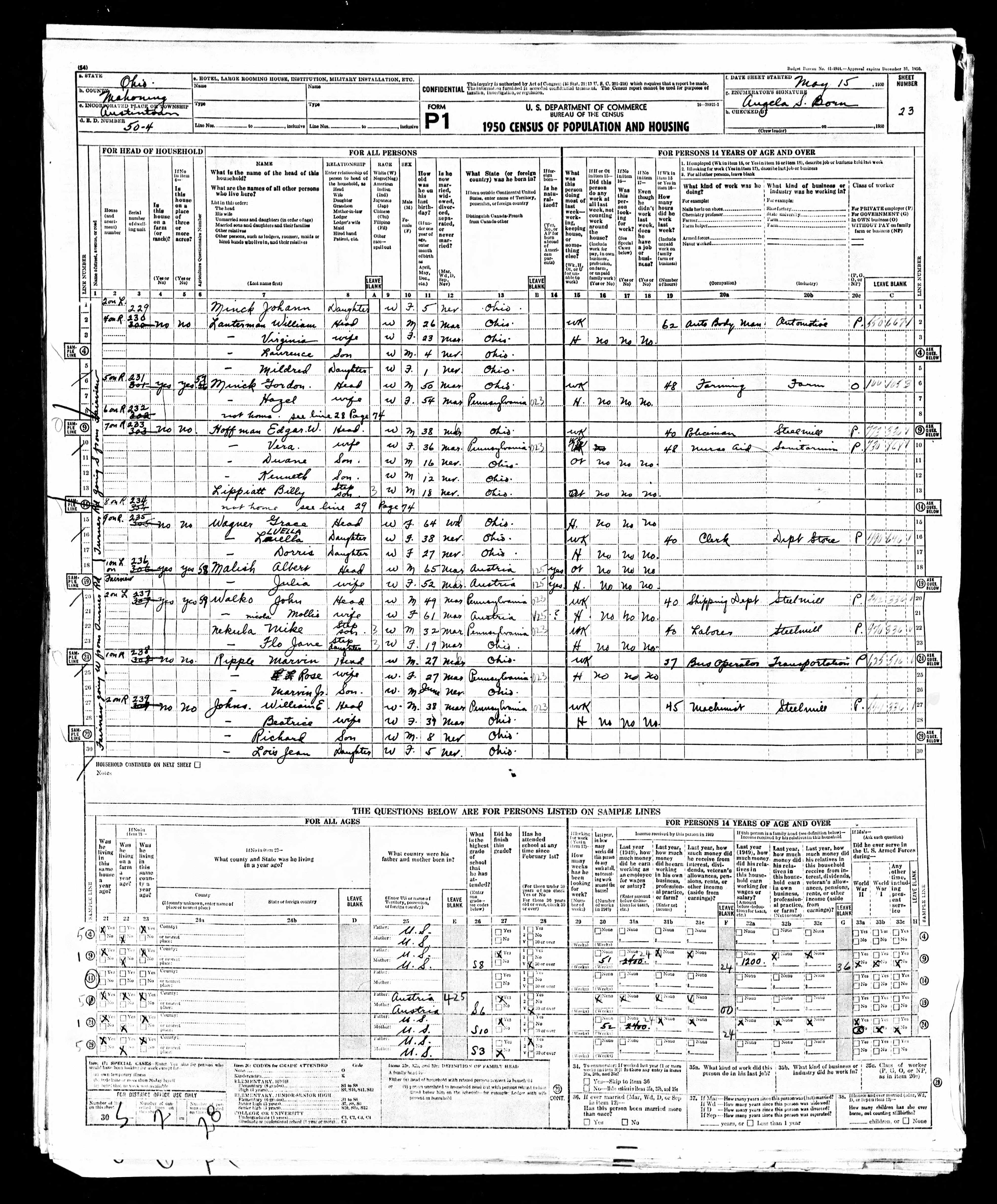 - [S3231] U.S. Federal Census: 1950, Mahoning County, Ohio, Enumeration District 50-4, sheet 023, ancestry.com (1950 U.S. Census) viewed on 26 September 2023.