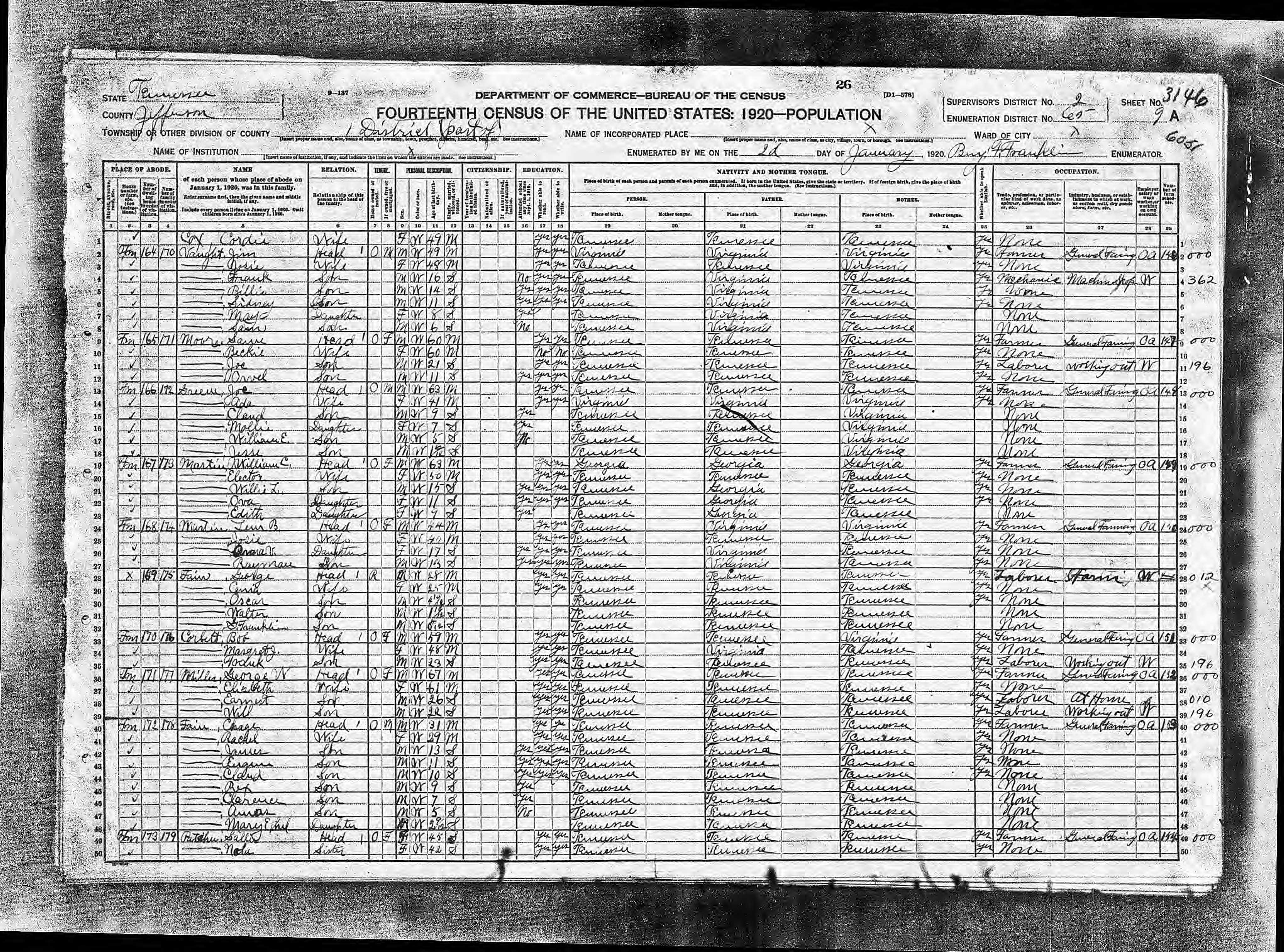 - [S3004] U.S. Federal Census: 1940, Jefferson County, Tennessee, Dist. 1, Enumeration District 45-3, page 27a, Sheet 3a, ancestry.com (1940 U.S. Census) viewed on 31 January 2022.