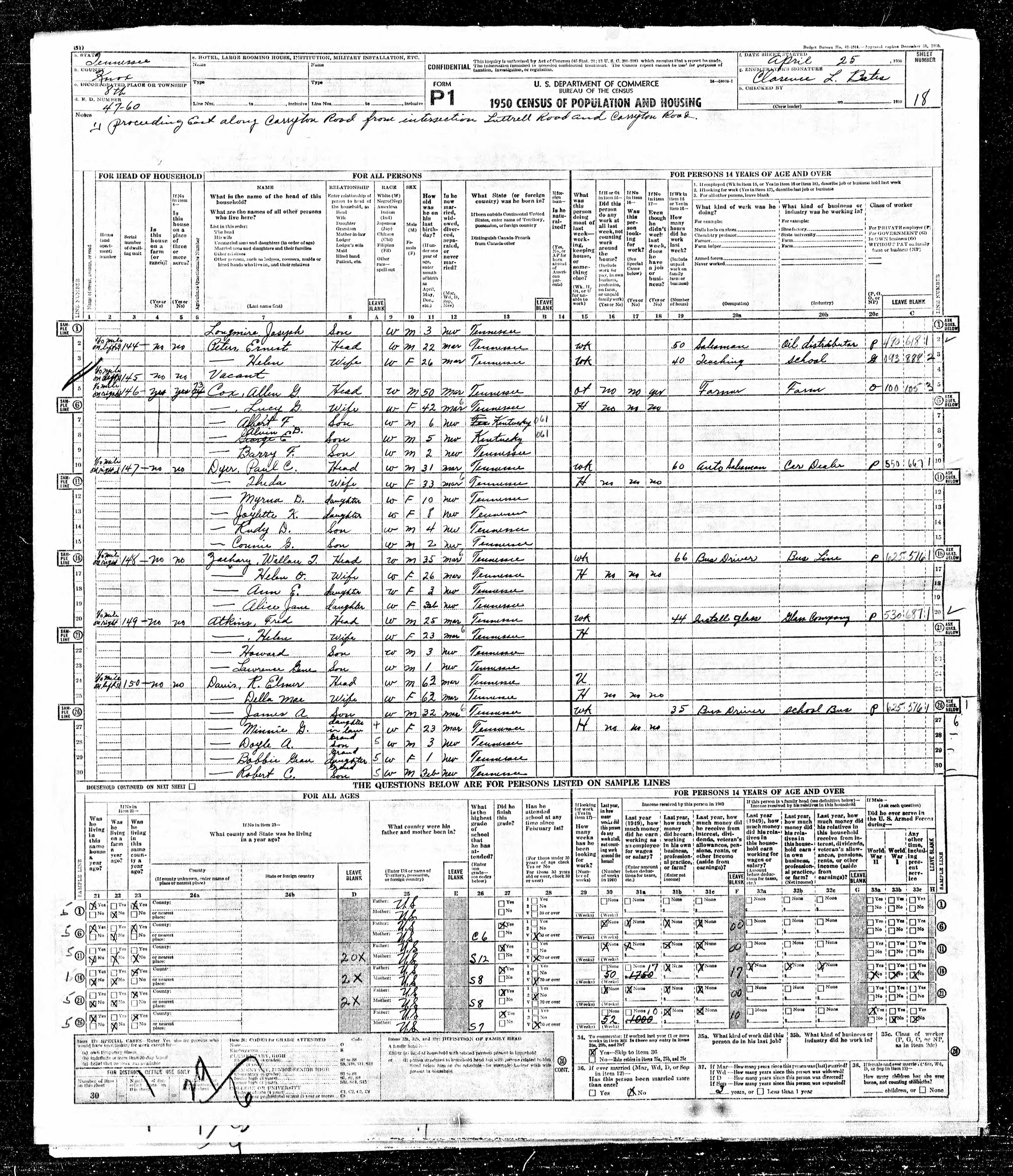 Knoxville, Knox County, Tennessee, Enumeration District 96-158, 1507 Oldham, 10 Apr 1950
