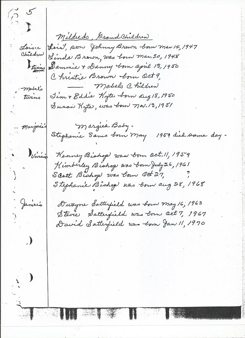 Cox/Slaton Family History from Hazel Cox, page 5.
