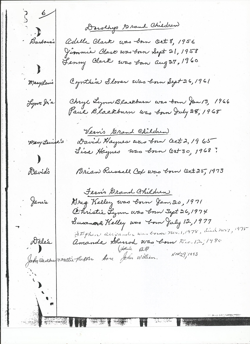 Cox/Slaton Family History from Hazel Cox, page 4.