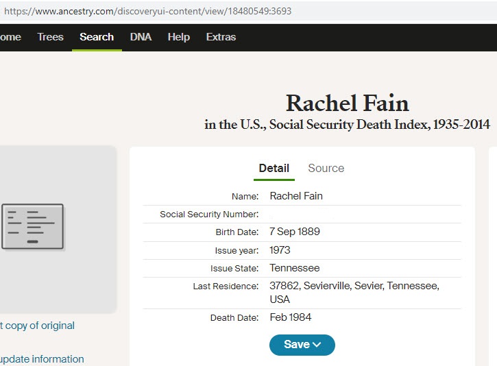 3. Birth date - Nov. 1, 1898, birth place - Dandridge, Tenn., father - not given, mother - Not given