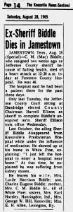 Ex-Sheriff Biddle Dies in Jamestown Jamestown, Tenn., Aug. 28