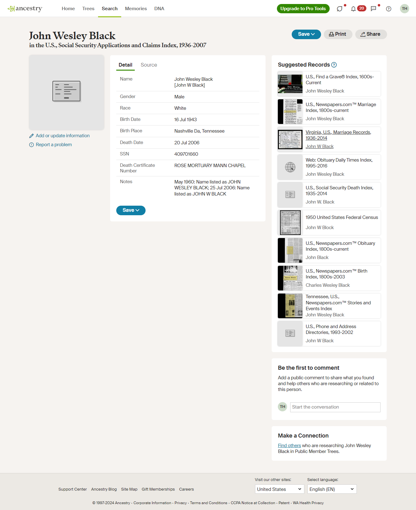 United States, Social Security Numerical Identification Files (NUMIDENT), 1936-2007