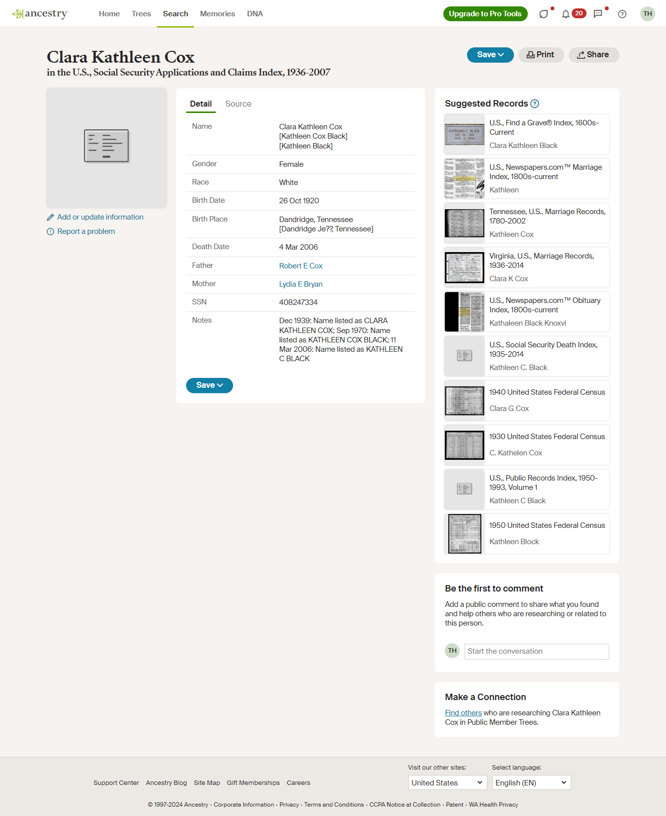 - [S3424] Birth Social Security Numerical Identifcation File: Brooks, Minnie King; Loudon County, Tennessee; 1889, familysearch.org, viewed 26 October 2024.