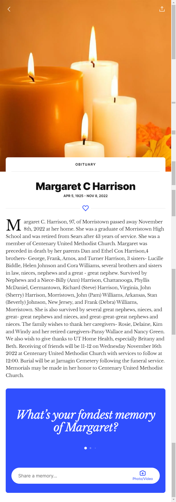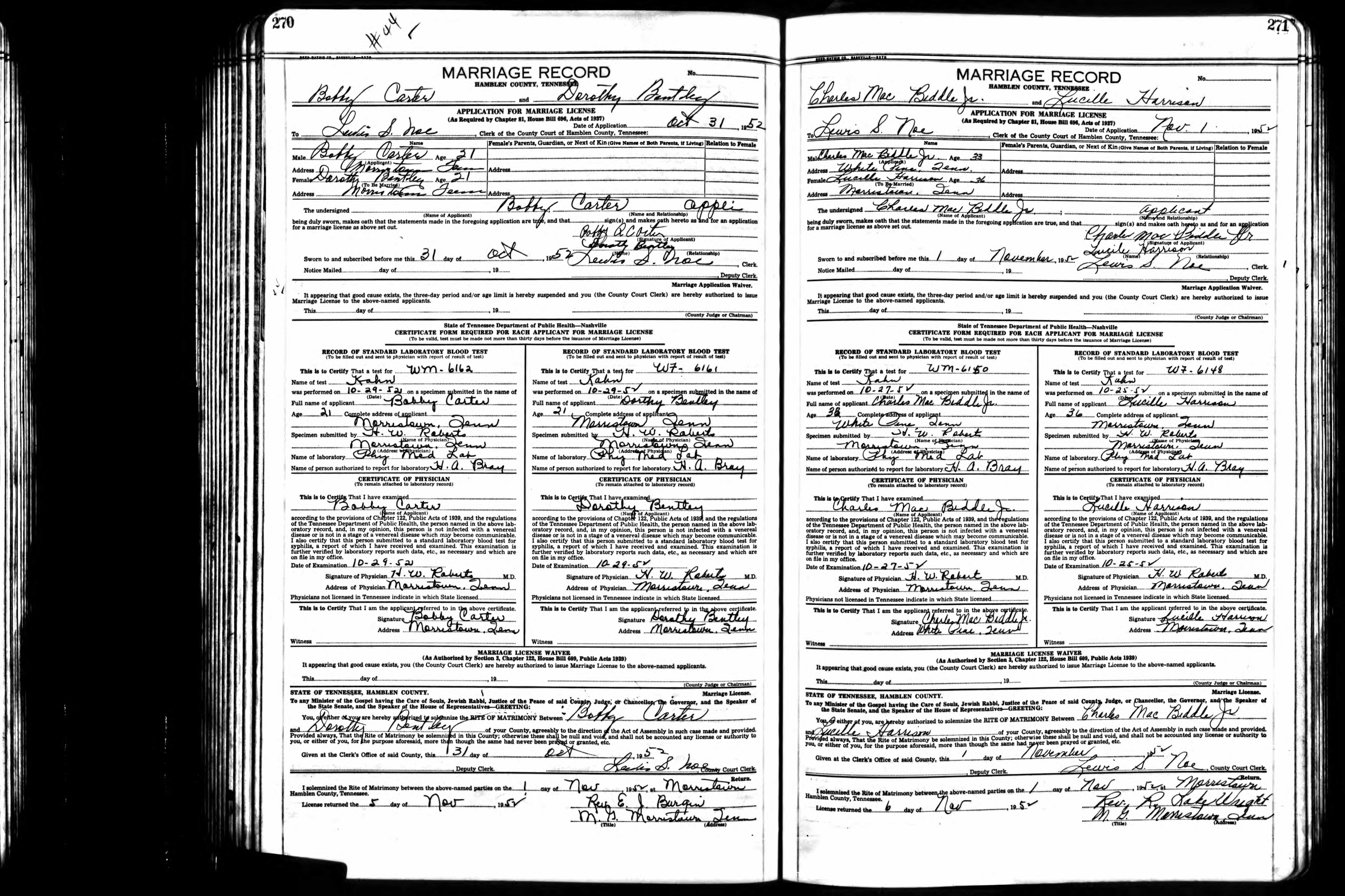 - [S3261] Marriage Record: Hamblen County, Tennessee, 1952; License 271; Biddle, Charles Mac Jr. and Lucille Harrison, ancestry.com, viewed 20 May 2024.