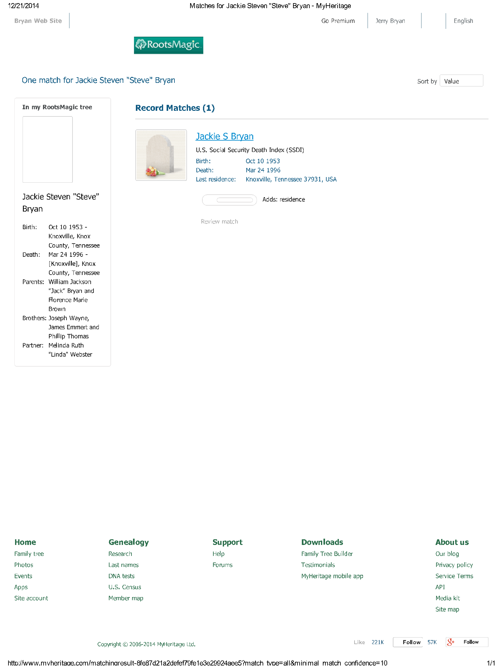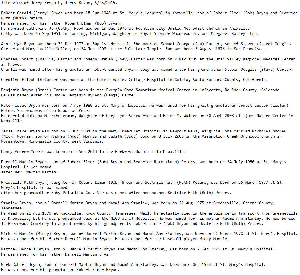 VIII. Robert Gerald Bryan,m,18 Dec 1976, Cathy