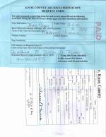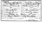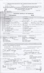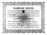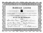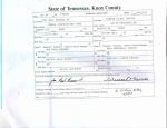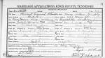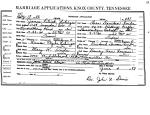 State of Tennessee, Knox County, application #1036, page 346, March 23, 1967. Groom: Name - Ernest Lester Peters, Route #1, Corryton, Knox County, Tenn; born - Feb. 28, 1895, age 72, white, born in Anderson County, Tennessee, widowed, 2 previous marriages; father - Alva E. Peters, born in Anderson County, Tennessee; mother - Sallie Cole, born in Blount County (sic), Tennessee; bride: Name - Rose Dell Murphy, Route #1, Corryton, Knox County, Tenn; born - October 18, 1905, age 61, white, born in Hamblen County, Tennessee, widowed, 1 previous marriages; father - James W. Hampton, born in Hamblen County, Tennessee; mother - Frances Wagner, born in Hamblen County, Tennessee. We, the Groom and Bride named in this application, hereby certify that the information given herein is correct to the best of our knowledge and belief. (signed) Ernest Lester Peters, Rose Dell Murphy. Date of Marriage - March 26, 1967, by Charles W. Davis, M.G. Marriage License, State of Tennessee, County of Knox. To any Minister of the Gospel, Priest or Jewish Rabbi, having the care of Souls, or Judge, or Justice of the Peace for said County - GREETING: I, W. Dwight Kessel, Clerk of the County Court of Knox County aforesaid, by the power in me vested by law, do license you or either of you, to celebrate the: RITES OF MATRIMONY BETWEEN Ernest Lester Peters of Corryton, Tennessee and Rose Dell Murphy of Corryton, Tennessee. Given at office in Knoxville, the 23 day of March 1967. (signed) Dwight Kessel Clerk. By Cleo Tucker, Deputy Clerk. No. 1036, Marriage License, Ernest Lester Peters TO Rose Dell Murphy, 1967, W. Dwight Kessel, Clerk. I solemnized the Rites of Matrimony between the above parties on the 26 day of March, 1967 at Murphy home 2:00 p.m., Rev. Charles W. Davis.