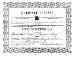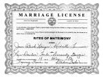 Date - June 25, 1957. Marriage Application #988, page 330. Groom: Name - Paul Marshall Tarver, Rt 12 - Tazewell Pike, Knoxville, Knox County, Tenn; born - April 1, 1933, age 24, white, born in Knox Co., Tenn., single, 0 previous marriages; father - Fred Russell Tarver, Sr, born in Corryton, Tenn.; mother - Anna Elizabeth Luttrell, born in Knox Co., Tenn.; Bride: Name - Virginia Irene Peters, Rt 1, Corryton, Knox County, Tenn; born - Nov. 20, 1934, age 22, white, born in Anderson Co., Tenn., single, 0 previous marriages; father - Ernest Lester Peters Sr, born in Anderson Co. Tenn.; mother - Lola Ethel Williamson, born in Lenoir City Tenn. We, the Groom and Bride named in this application, hereby certify that the information given herein is correct to the best of our knowledge and belief. (signed) Paul M. Tarver, Virginia I. Peters. Date of Marriage - June 28, 1957, by C. Walter Martin M.G. Marriage License, State of Tennessee, County of Knox. To any Minister of the Gospel, Priest or Jewish Rabbi, having the care of Souls, or Judge, or Justice of the Peace for said County - GREETING: I, W. W. (Bill) Luttrell, Clerk of the County Court of Knox County aforesaid, by the power in me vested by law, do license you or either of you, to celebrate the: RITES OF MATRIMONY BETWEEN Paul Marshall Tarver of Knoxville, Tenn. and Virginia Irene Peters of Corryton, Tenn. Given at office in Knoxville, the 25 day of June 1957. (signed) W. W. Luttrell Clerk. By Vivian Plyley, Deputy Clerk. No. 988, Marriage License, Paul Marshall Tarver TO Virginia Irene Peters, 1957, W. W. (Bill) Luttrell, Clerk. I solemnized the Rites of Matrimony between the above parties on the 28 day of June, 1957. Rev. C. Walter Martin, Church Hill, Tenn.