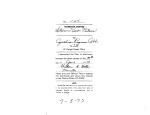 Knox County Marriage Application #254, Feb. 19, 1975. Groom: Name - A. E. Harrell III, Rt. 6, Box 461, Powell, Knox County, Tenn. Birth date - 6-8-57, age 17, Race - white, Birth Place - Atlanta, Georgia, single, 0 previous marriages. Father - A. E. Harrell, Jr., born Knoxville, Tenn. Mother - Joyce Yadon, born - Tennessee. Bride: Carolyn Sue Davis, Route 1, Richland Dr., Mascot, Knox County, Tenn. Birth date - 12-2-53, age 21, Race - white, single, 0 previous marriages. Father - John Willis Davis, born Knoxville Tenn. Mother - Verna Marie Rush, born Knoxville, Tenn. Future address - Rt. 2, Blaine, Tennessee 37709. (signed) A. E. Harrell III and Carolyn Sue Davis. I solemnly swear that I am the of A. E. Harrell III that he is 17 years of age, and that I herby join in the forgoing application. Mother deceased - affadit (sic) from Father, this 19 day of Feb. 1975. Date of Marriage - February 19, 1975 by Wm. Hugh King, M.G. Marriage License, State of Tennessee, County of Knox. To any Minister of the Gospel, Priest or Jewish Rabbi, having the care of Souls, or Judge, or Justice of the Peace for said County - GREETING: I, W. Dwight Kessel, Clerk of Knox County aforesaid, by the power in me vested by law, do license you or either of you, to celebrate the: RITES OF MATRIMONY BETWEEN A. E. Harrell III of Knox Co, Tenn. and Carolyn Sue Davis of Knox Co, Tenn. Given at office in Knoxville, the 19 day of Feb 1975. (signed) Dwight Kessel, Clerk, by S. Dyke, Deputy Clerk. No. 254, Marriage License, A. E. Harrell III TO Carolyn Sue Davis, 1975, W. Dwight Kessel, Clerk. I solemnized the Rites of Matrimony between the above parties on the 19th day of February, 1975. Bishop William Hugh King, Minister of the Gospel. (returned 2-19-75)