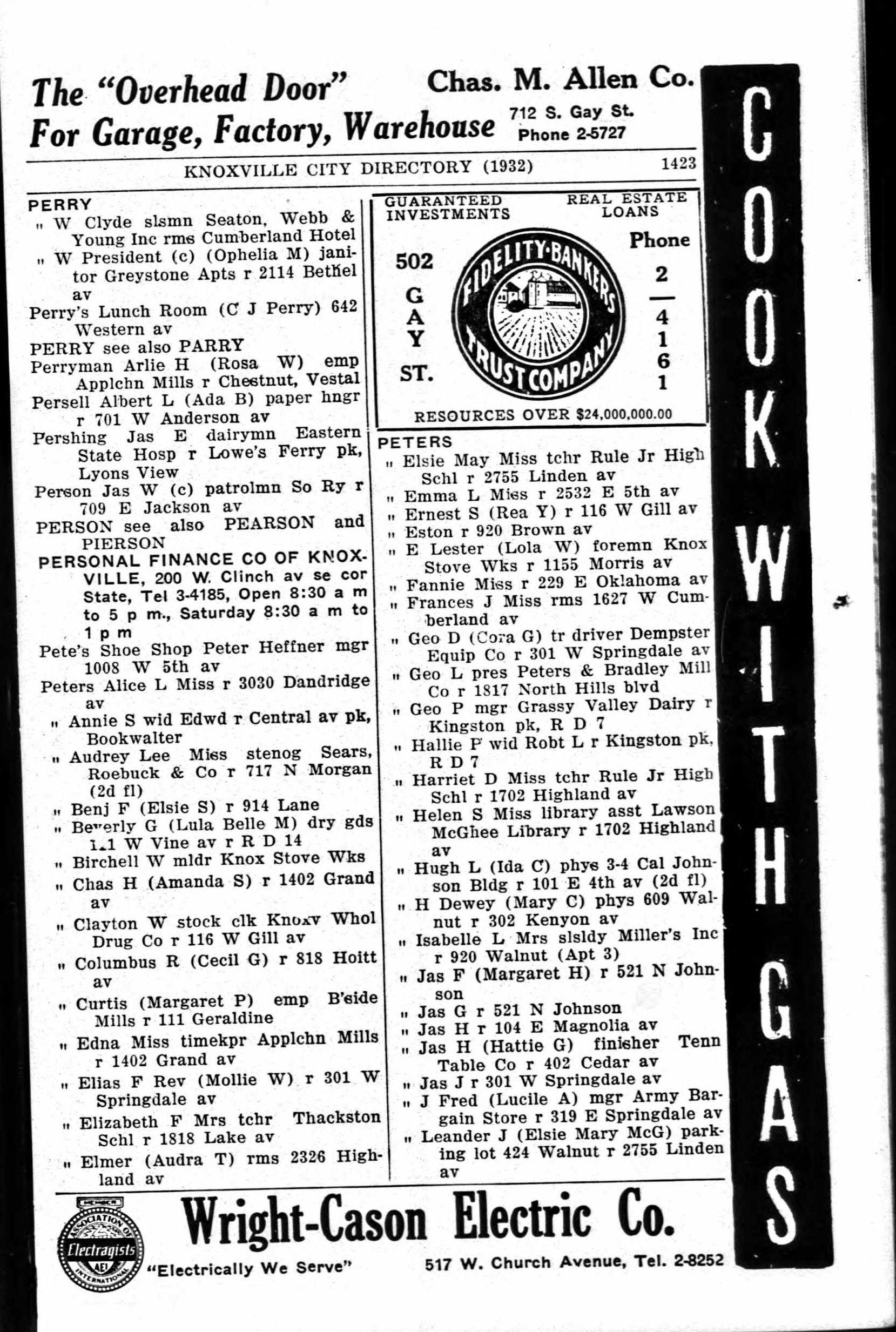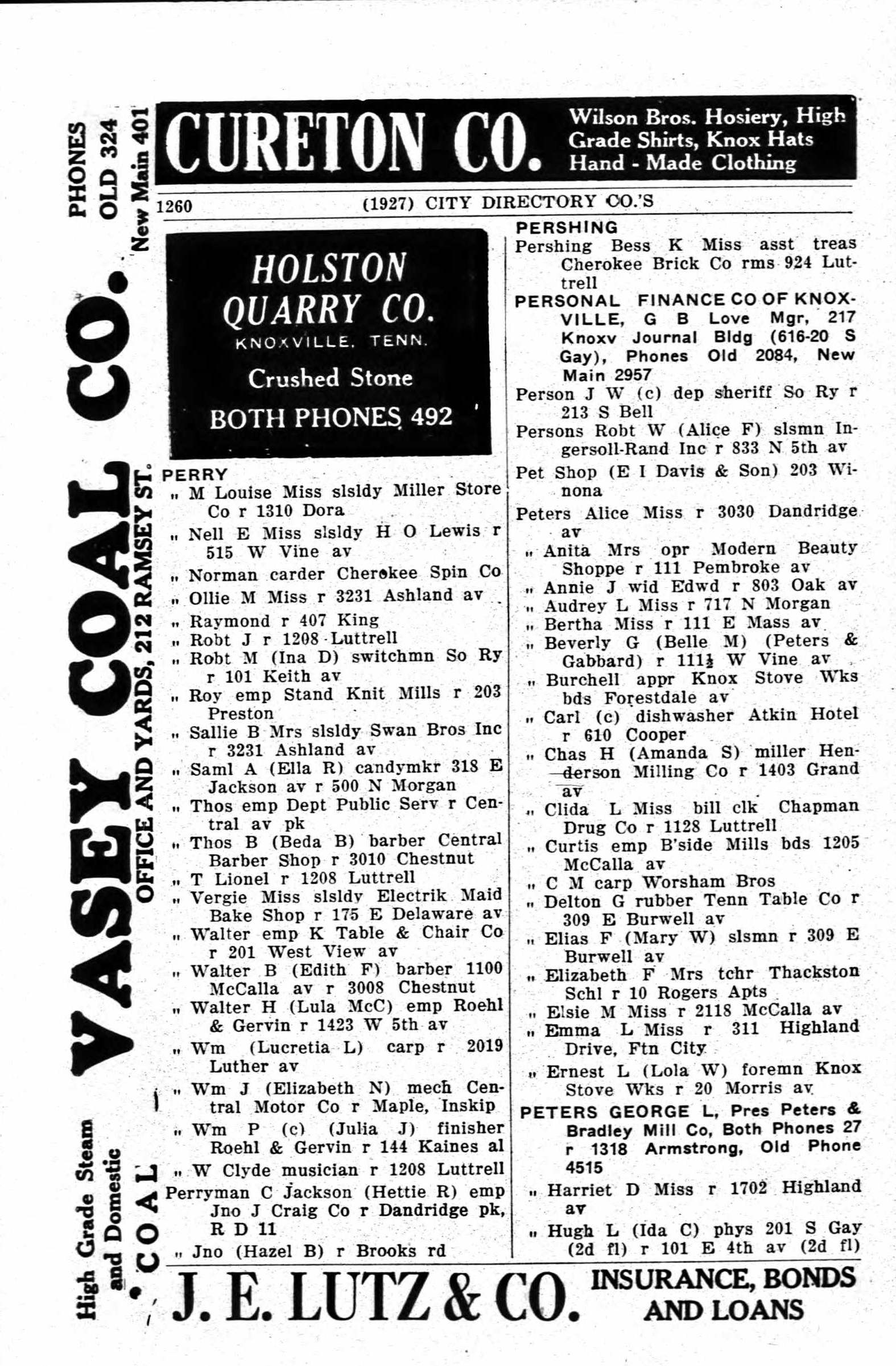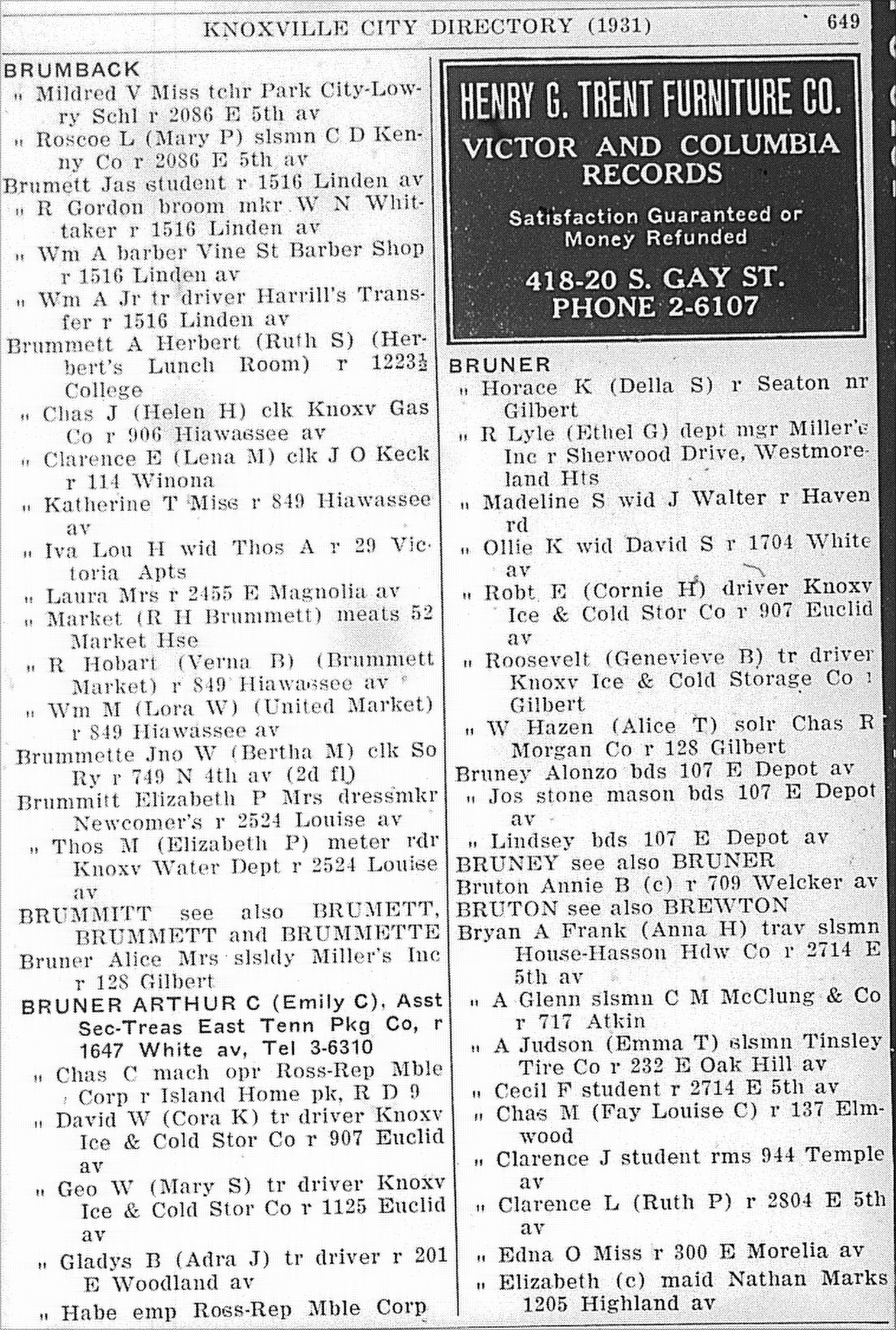 - [S1758] City Directory: Knoxville, Tennessee, 1931, page 650.