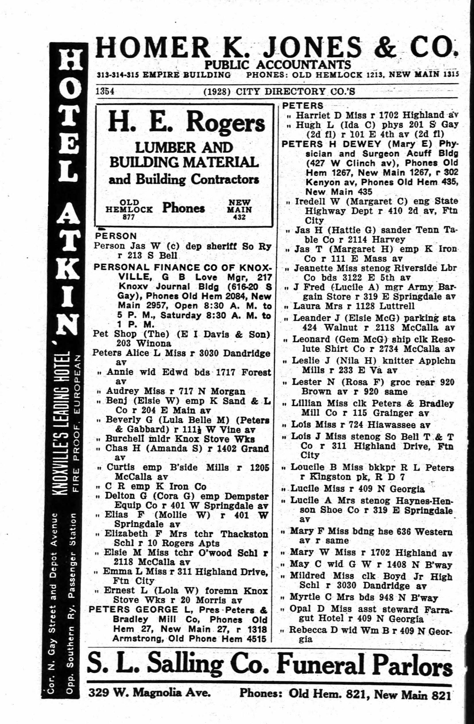 - [S1756] City Directory: Knoxville, Tennessee, 1930, page 659, viewed at ancestry.com (U.S. City Directories, 1821-1989) on 31 March 2014.
