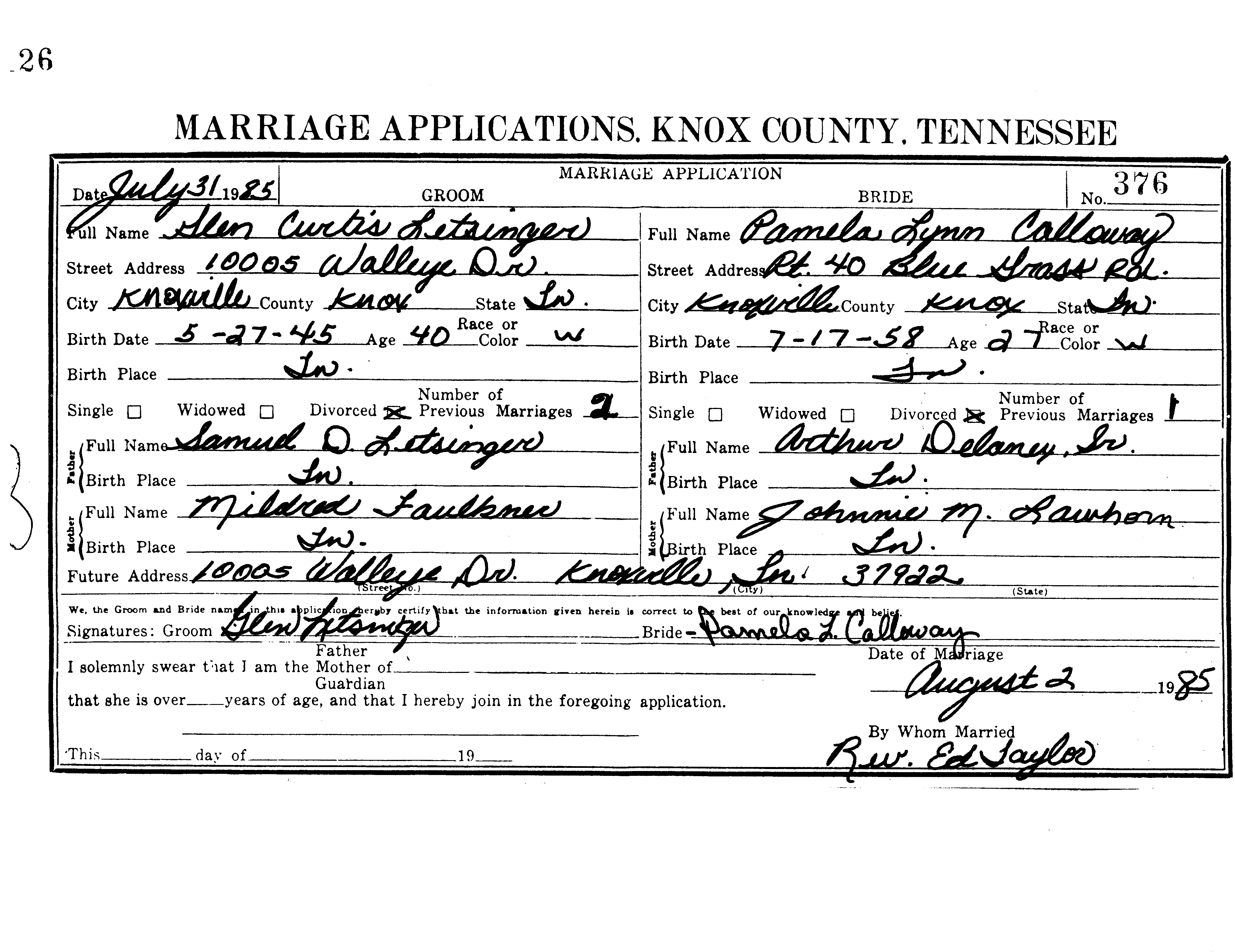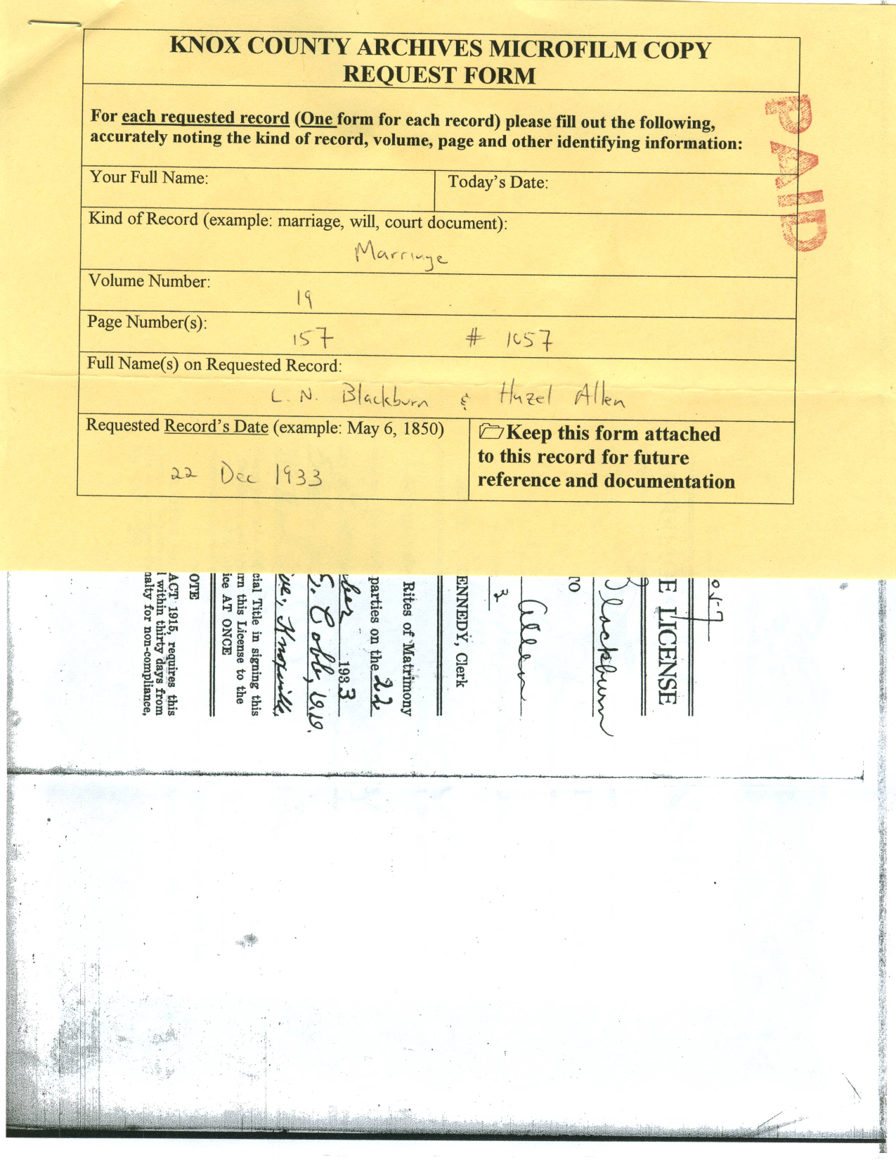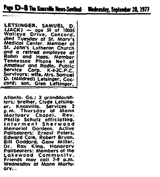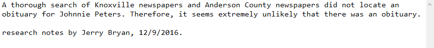 - [S2021] City Directory: Knoxville, Tennessee, 1936, page 692, viewed at www.ancestry.com on 14 December 2015.