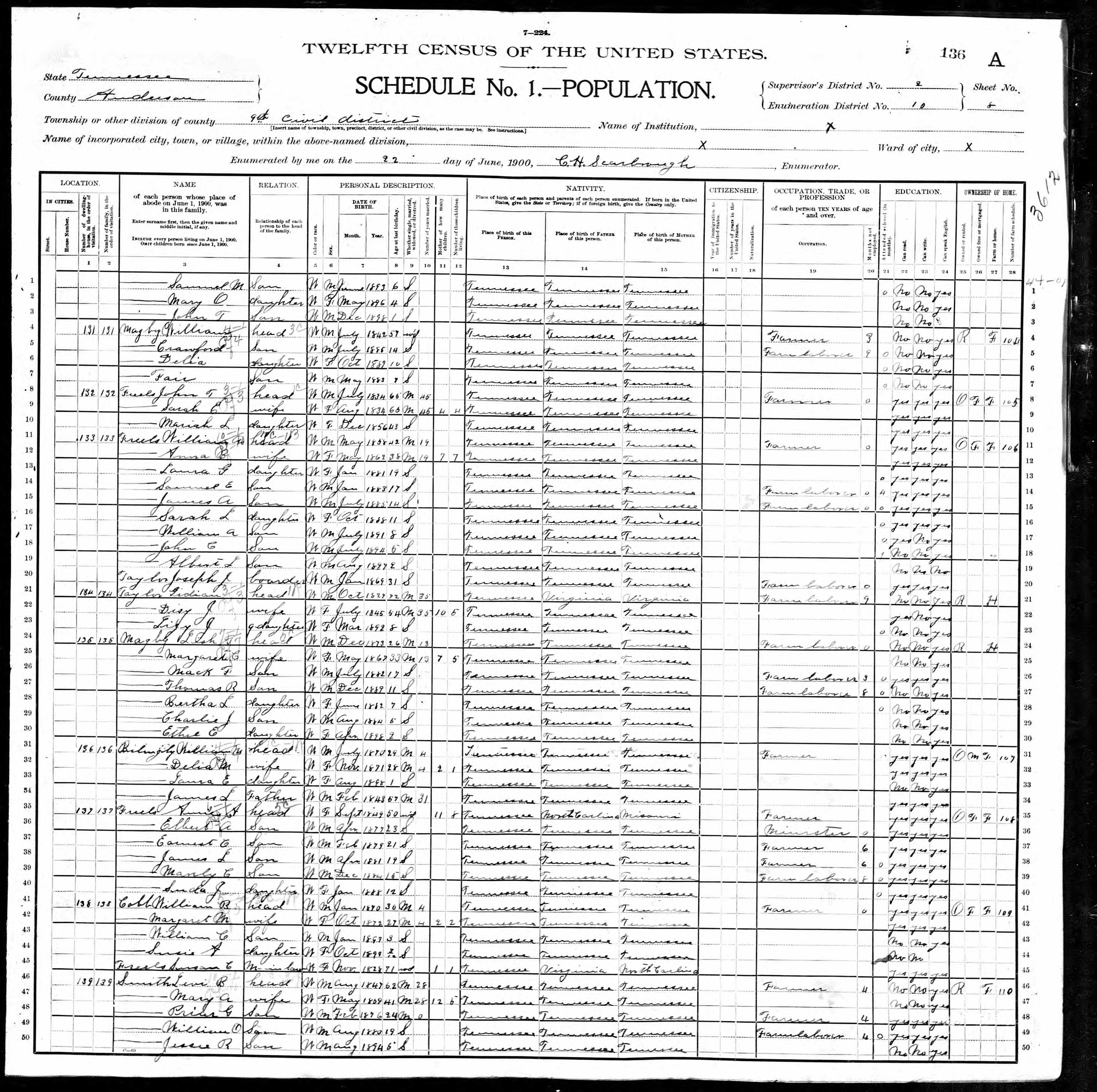 Holliway Joseph E. 36 head m m@18 w farmer TN TN TN