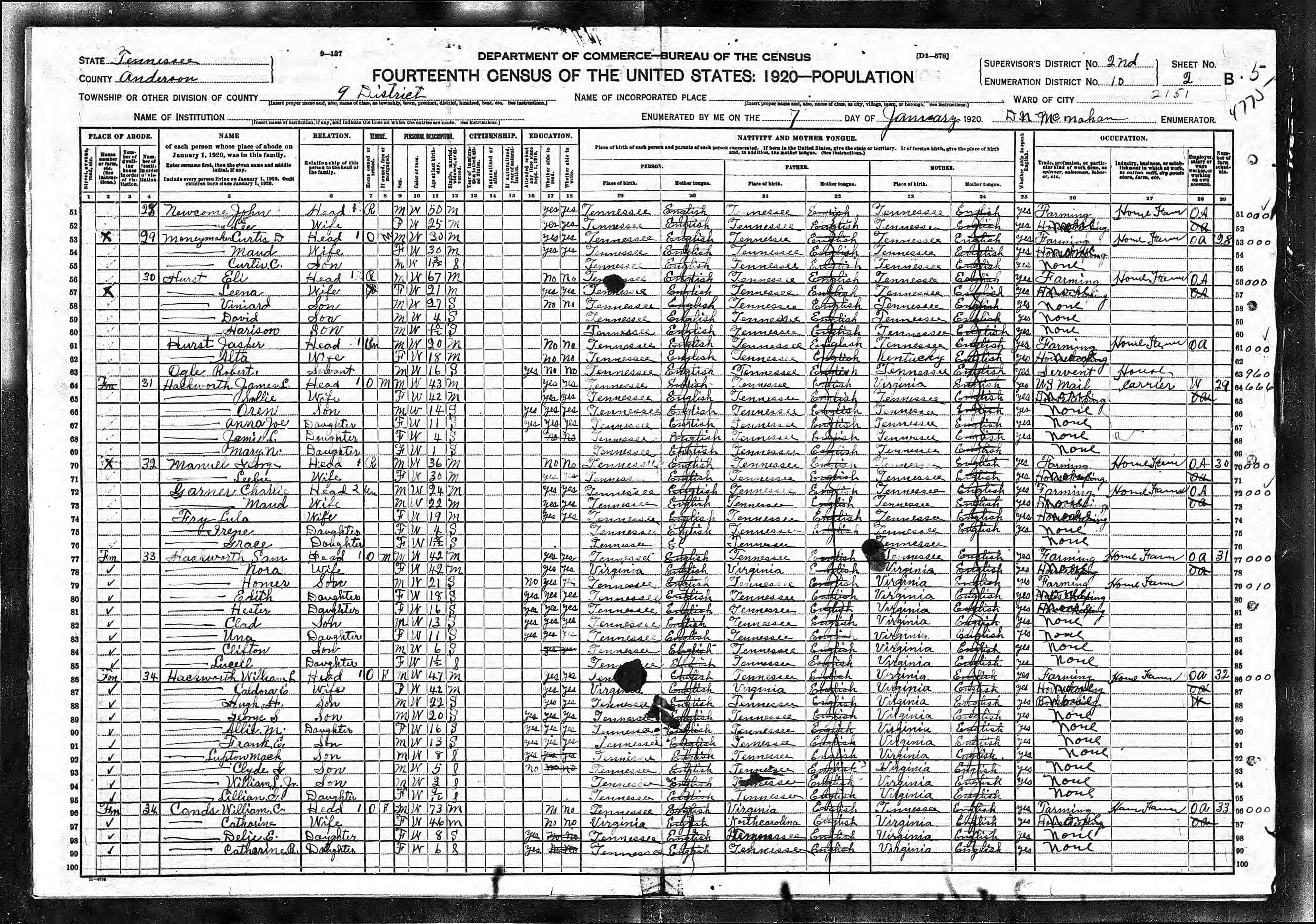 Dist. 13, Enumeration District 136, Knox County, Tennessee, 2 Feb 1920