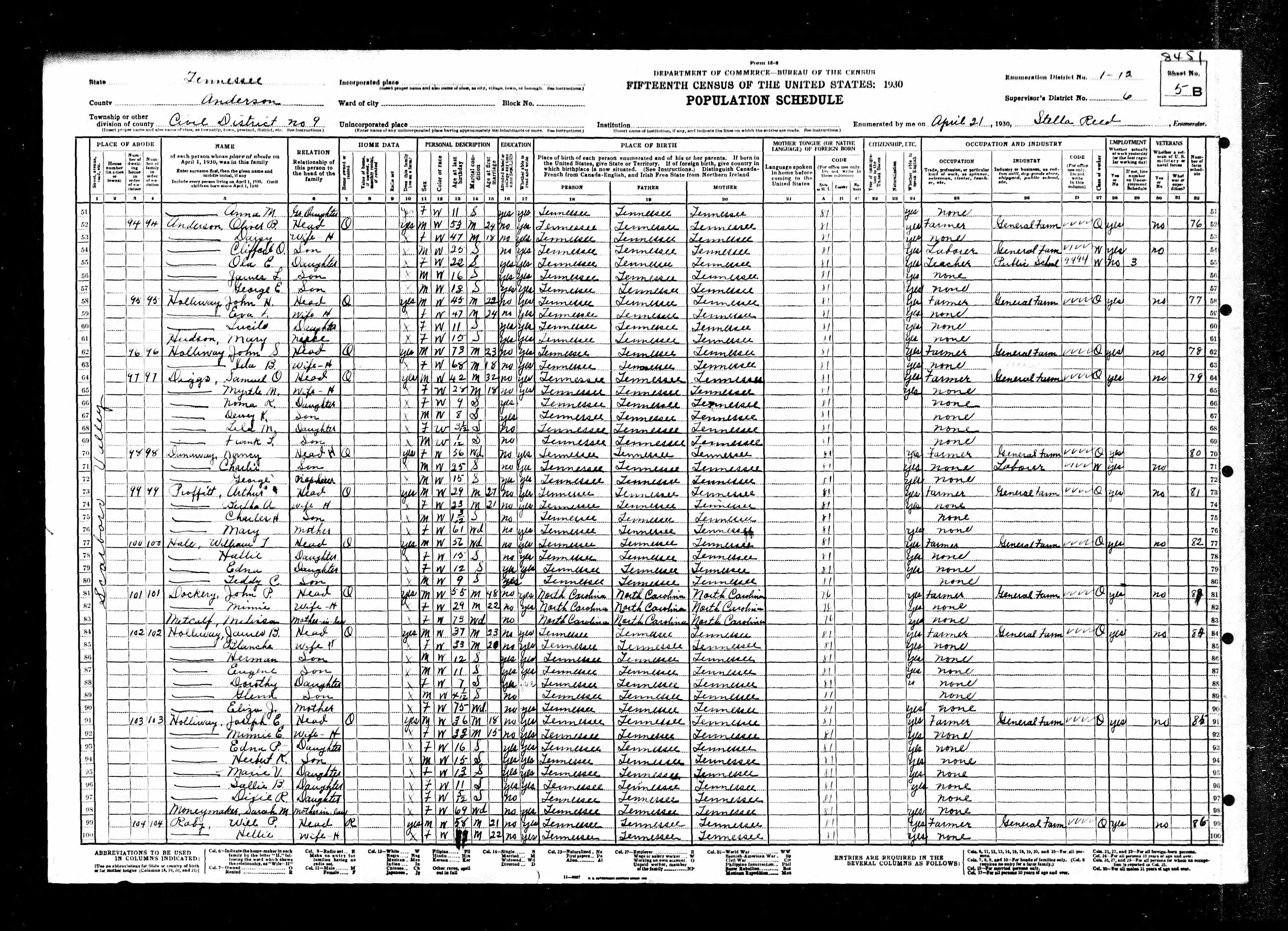 Dist. 9, Anderson County, Tennessee, 19 Apr 1930