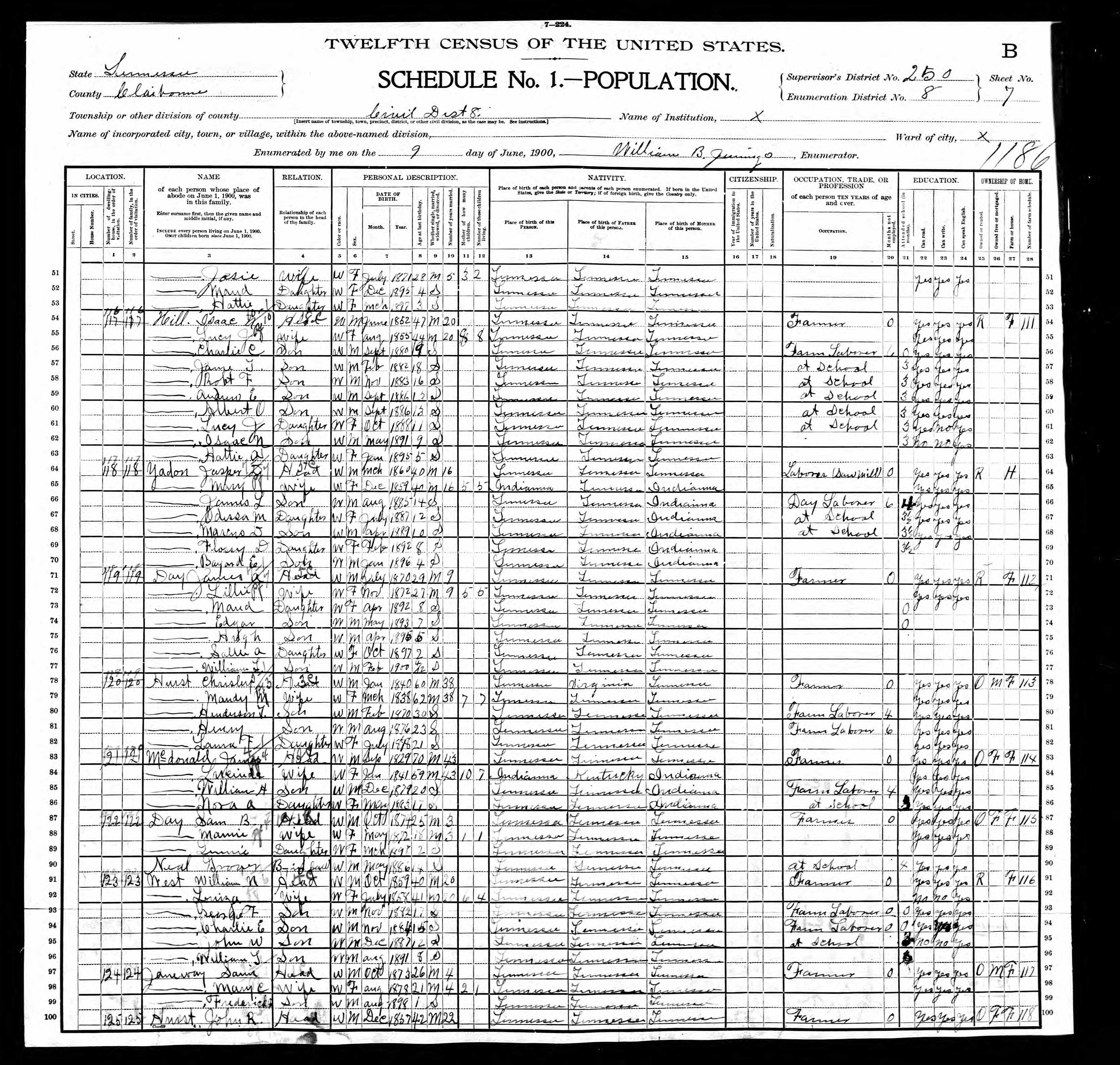 Bill 16 son m s w 2 years high school, born IN, lived 1935 same house