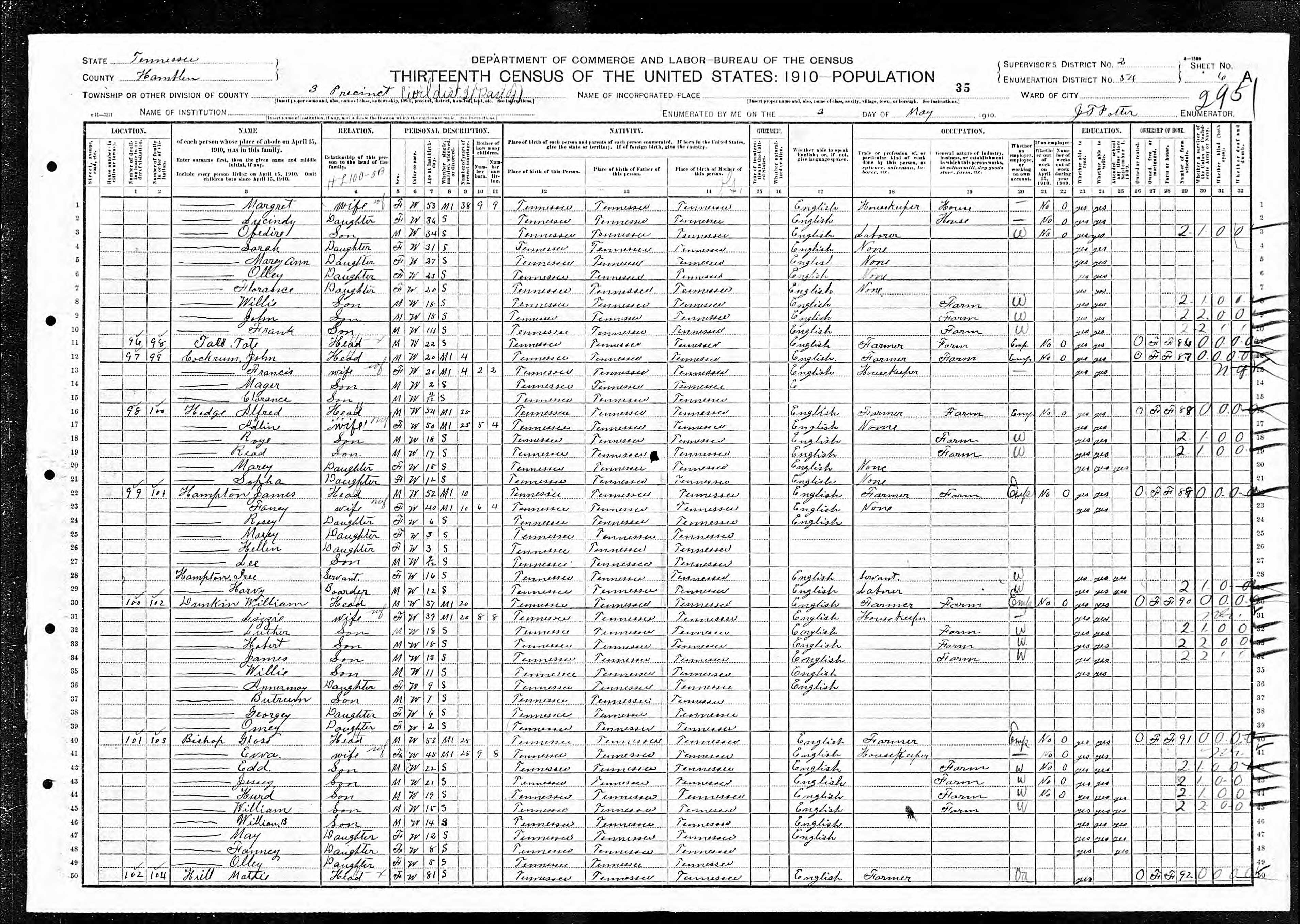 Holloway John H. 35 head m m w farmer, home farm TN TN TN