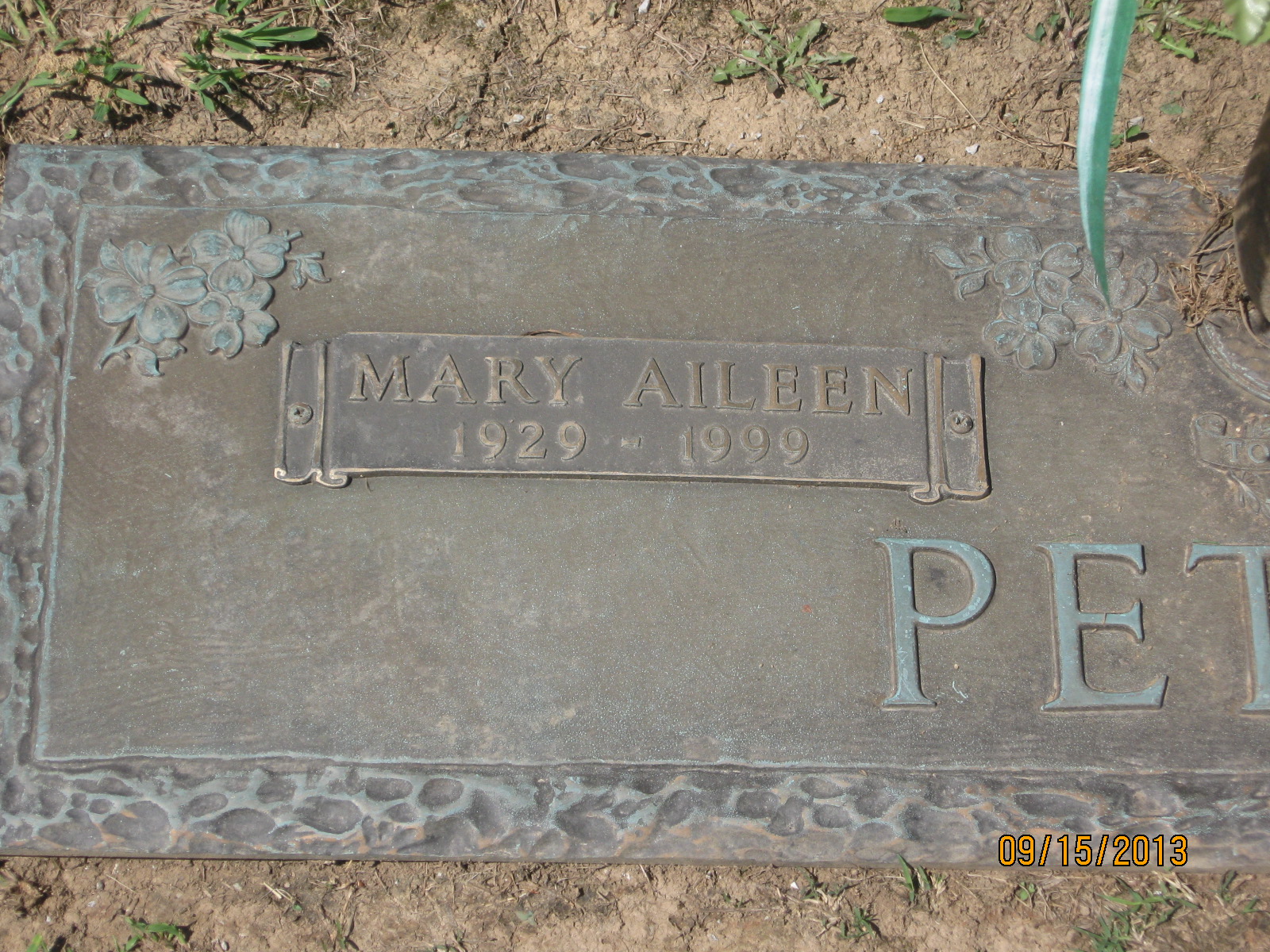 Grave marker: Mary Aileen Peters, 1929-1999, same marker as Howard R. Peters.