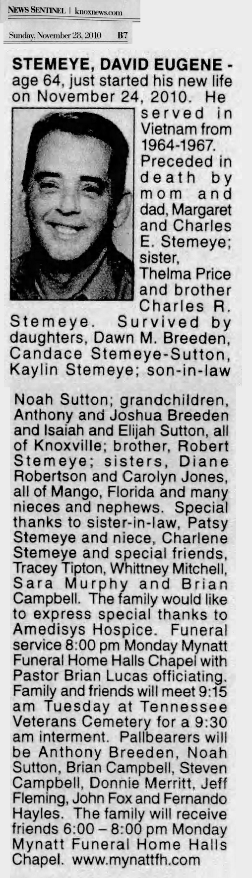 Knoxville News-Sentinel [Knoxville, Tennessee], 27 Dec 2007.