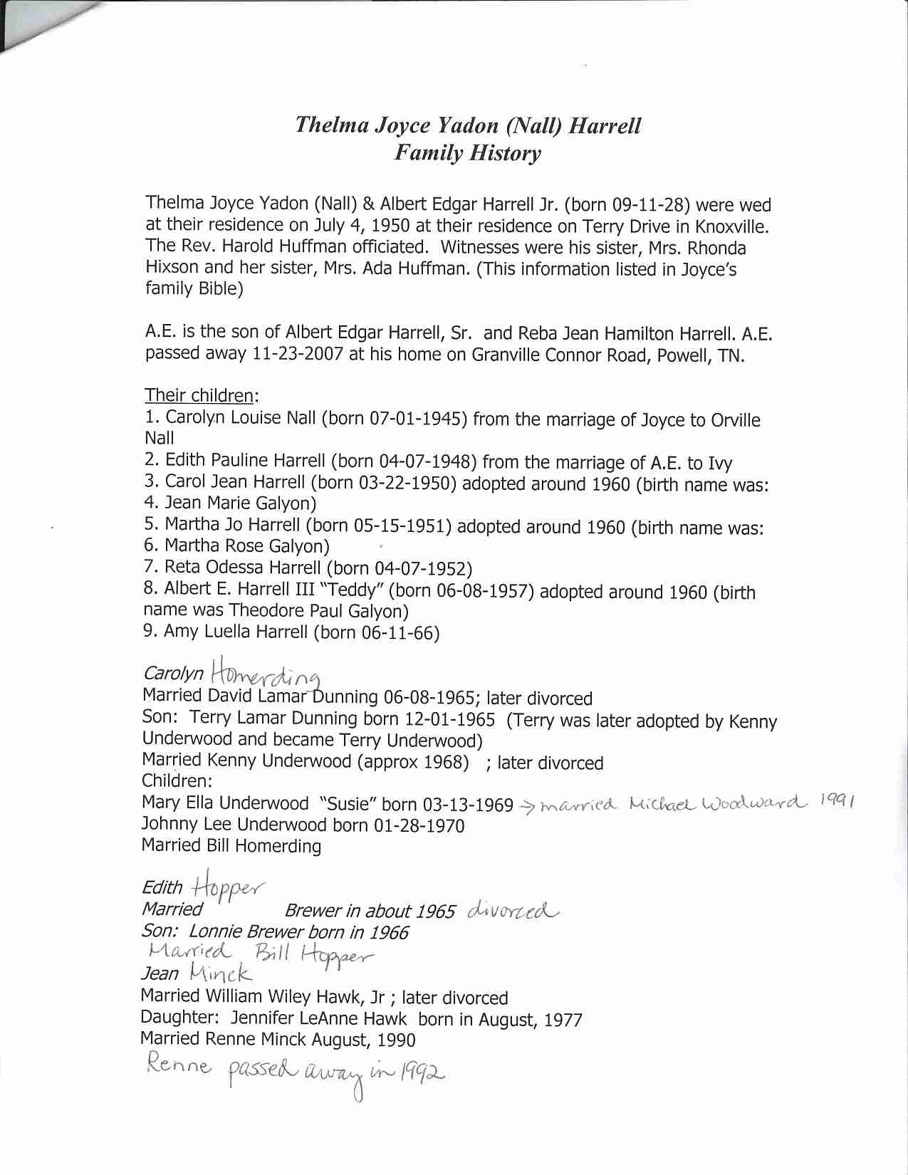 Mary Ella Underwood "Susie" born 03-13-1969 -> married Michael Woodward 1991