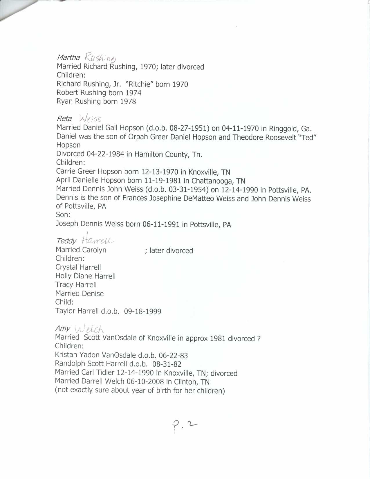6C. Addie Underwood, b. 1901; d. Oct 4, 1969 m. Franklin