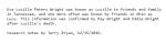 - [S2237] Bryan, Jerry: research notes, 15 December 2016 (Lucille Wright).