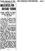Hold Rites for Bayard Yadon. Funeral Services for News-Sentinel Reporter Set for 2 P.M. Today.