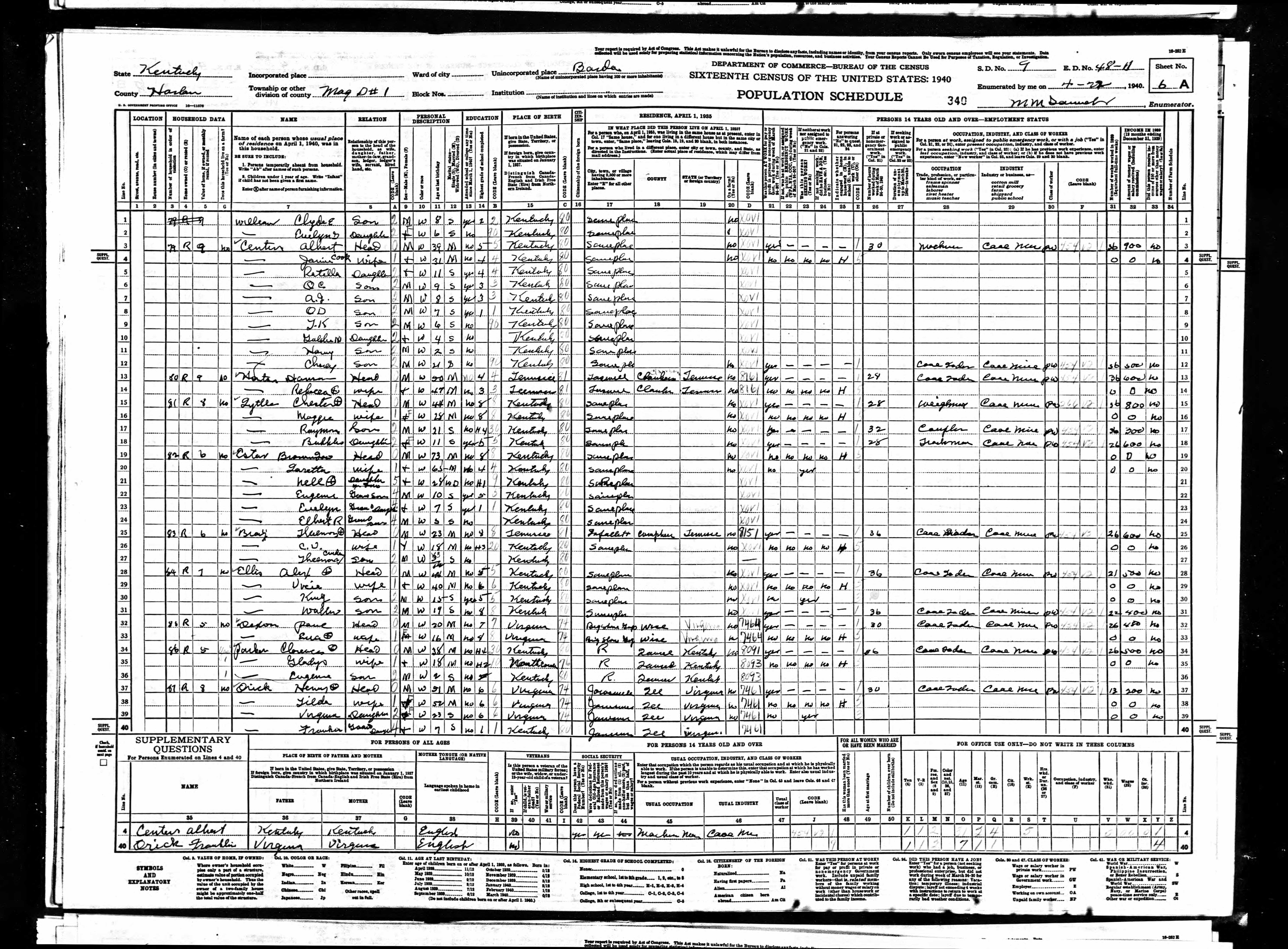 Magisterial Dist. 1, Enumeration District 48-11, Harlan County, Kentucky, 22 Apr 1940