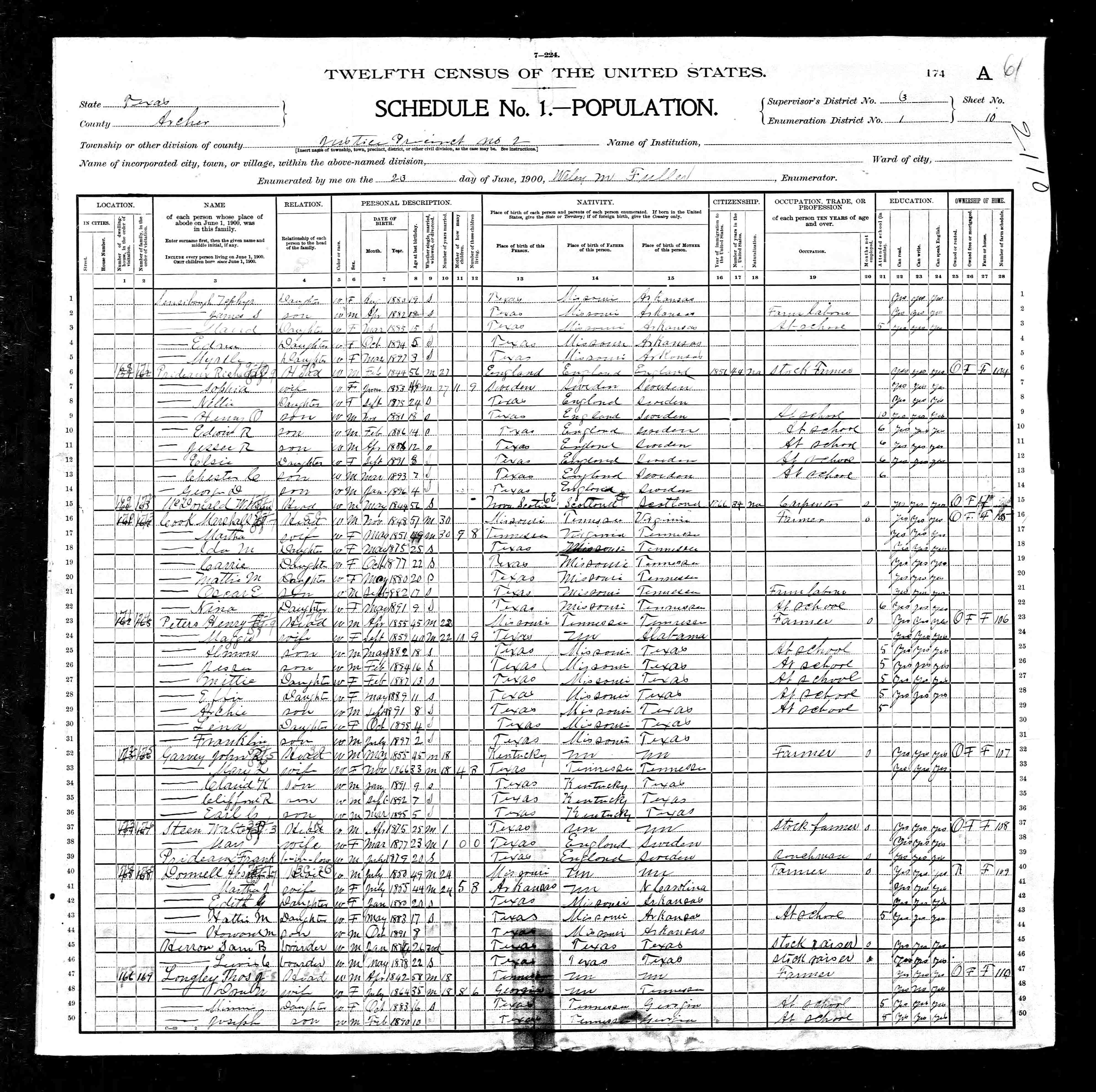 1900, Judicial District 2, Enumeration District 42, Archer County, Texas, page 174a |
