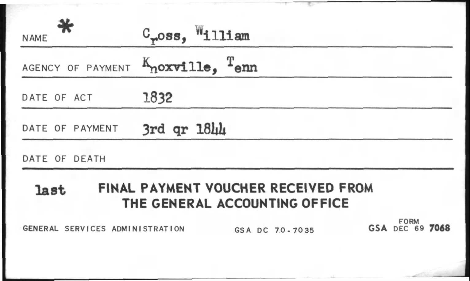 Agency of Payment - Knoxville, Tenn