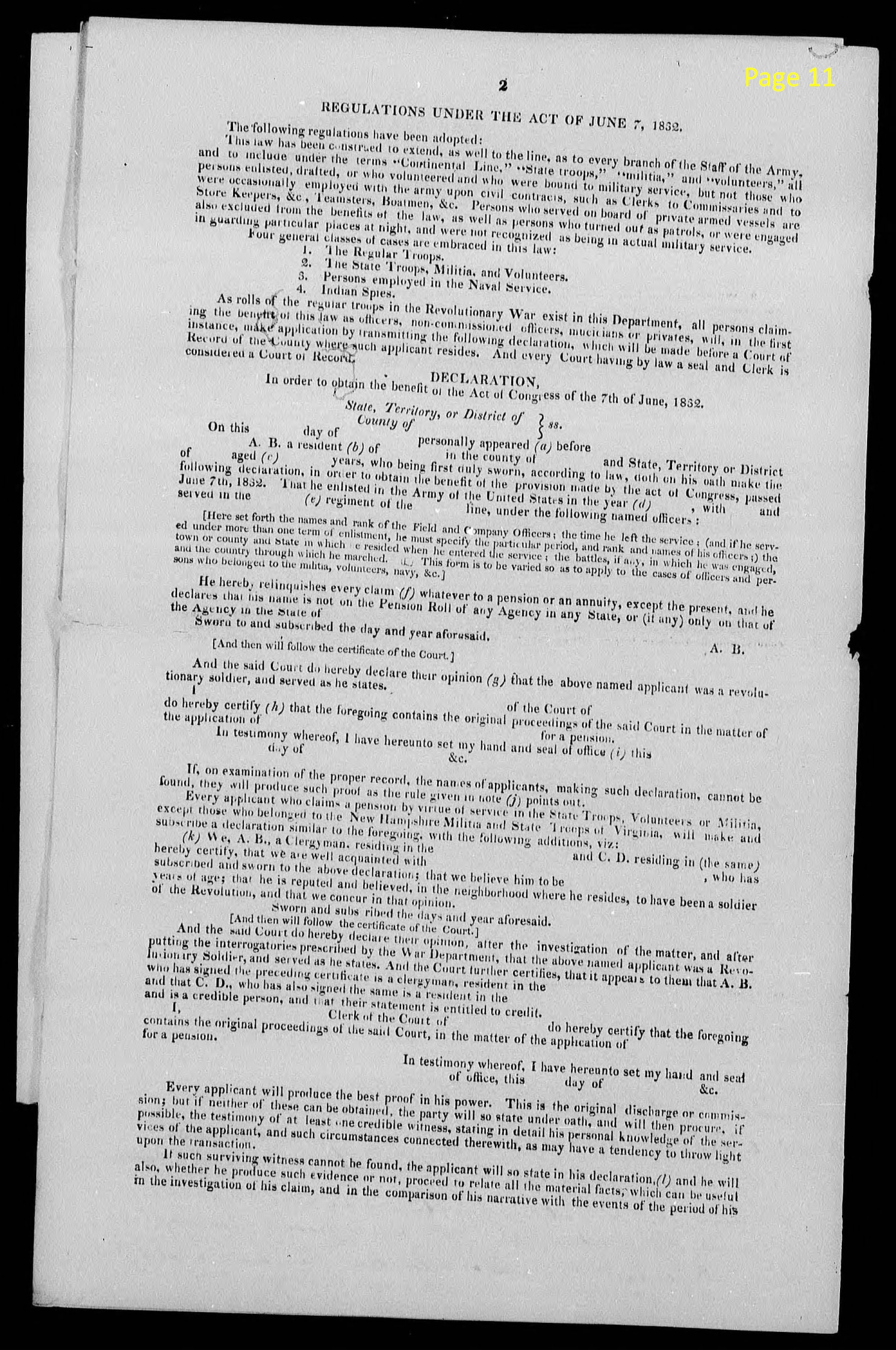 The evidence in support of your claim under the act of June 7, 1832,