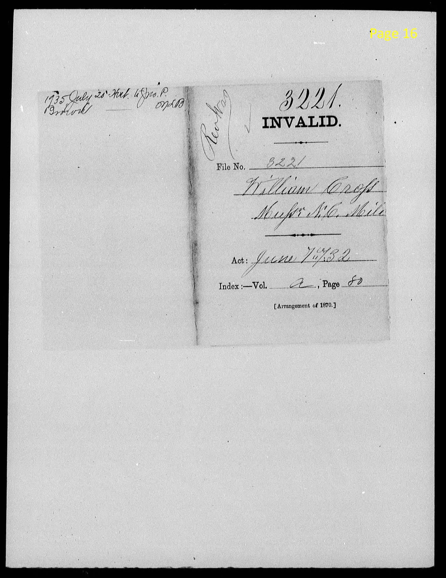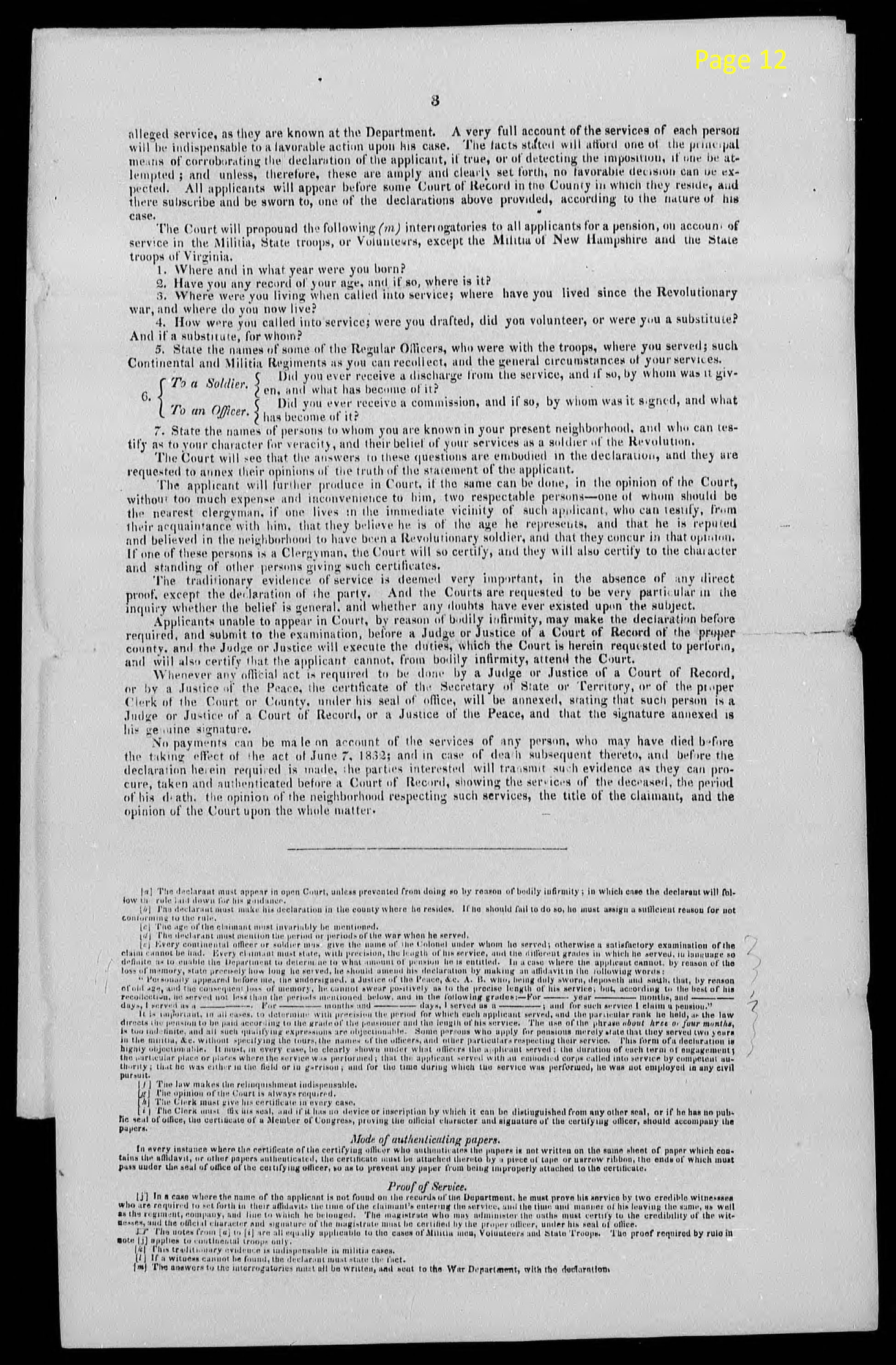 Certificate of Pensions signed the 12 day of Feby