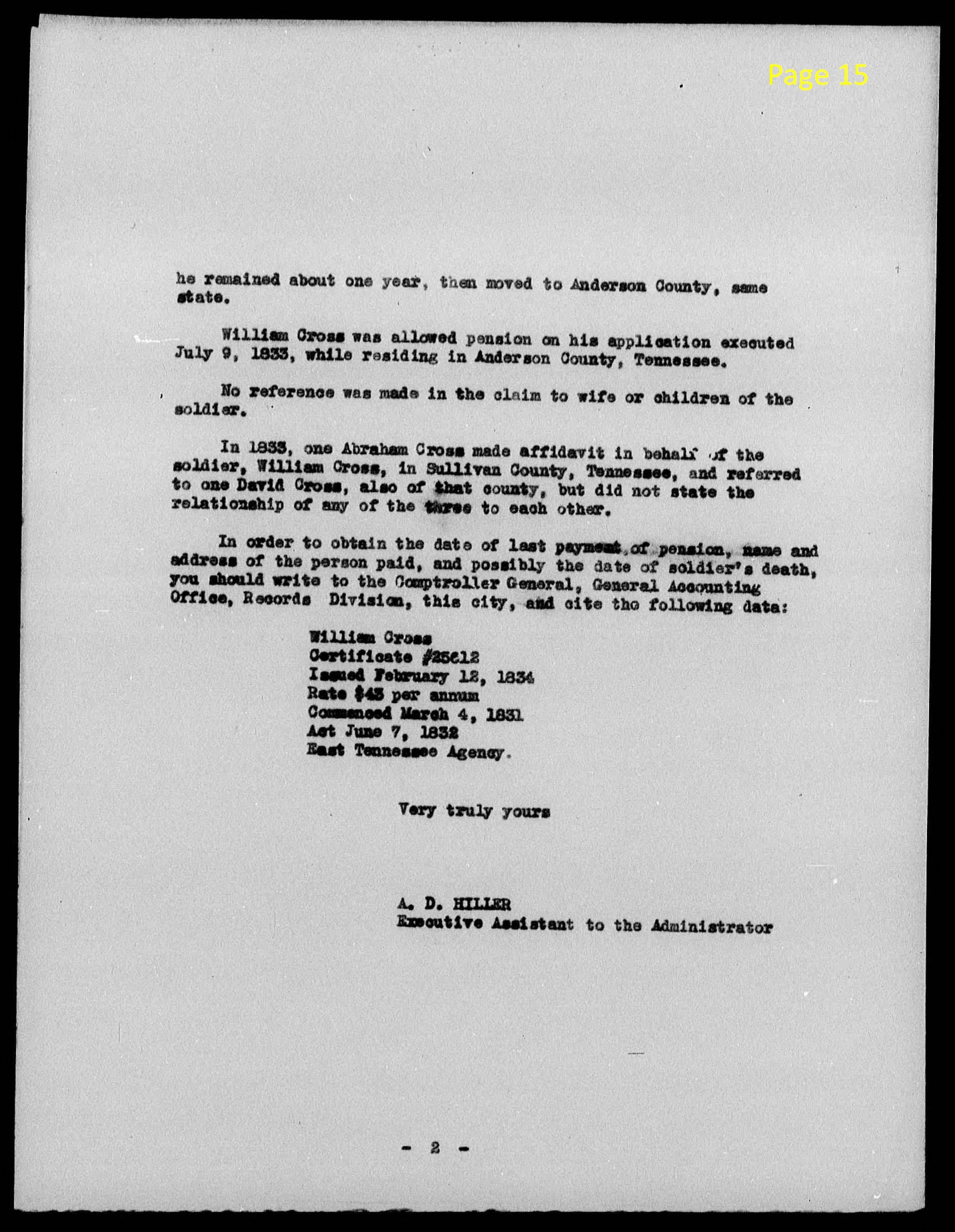 William Cross of Anderson County, Tennessee