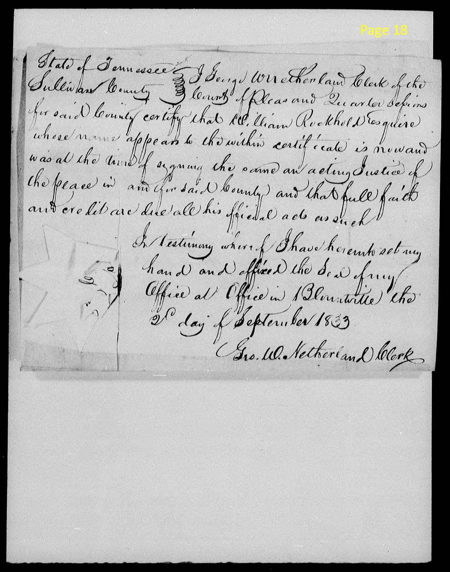 State of Tennessee ) I George W. Netherland Clerk of the