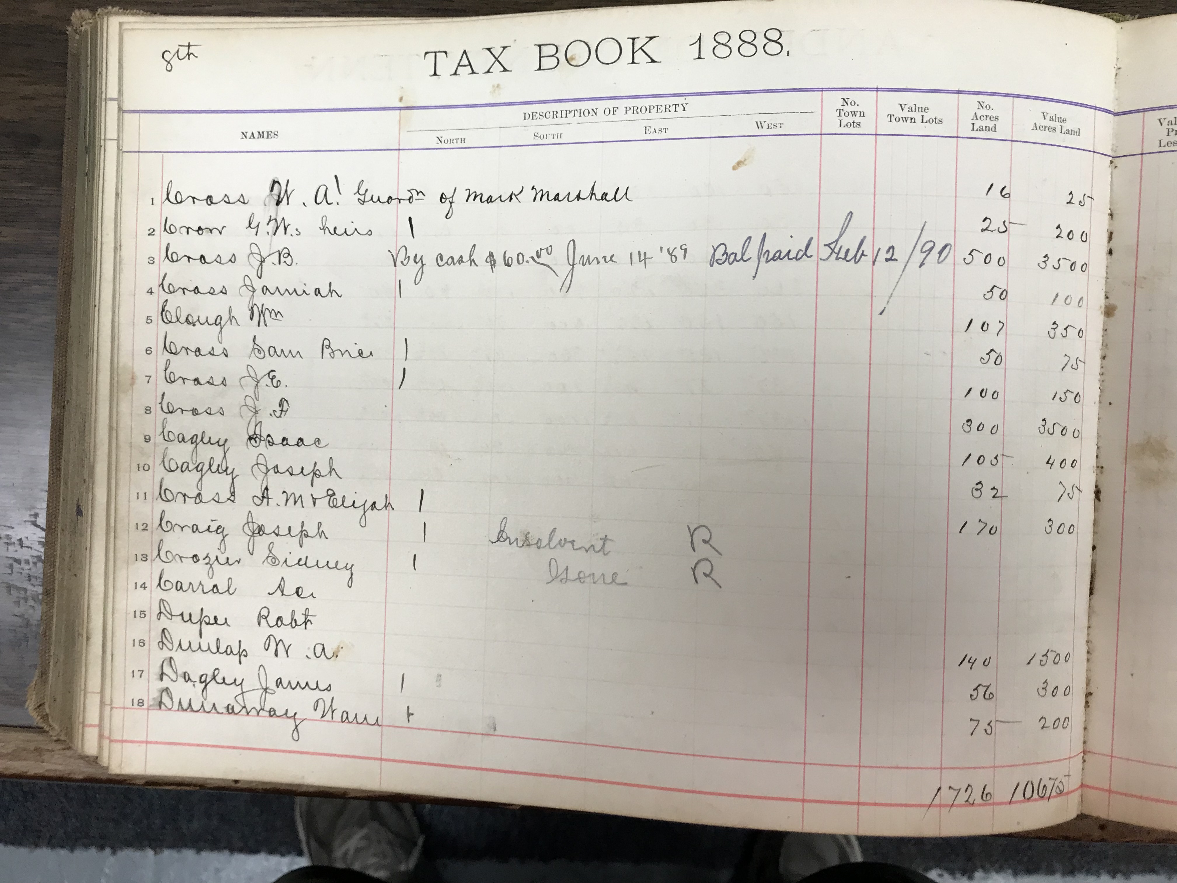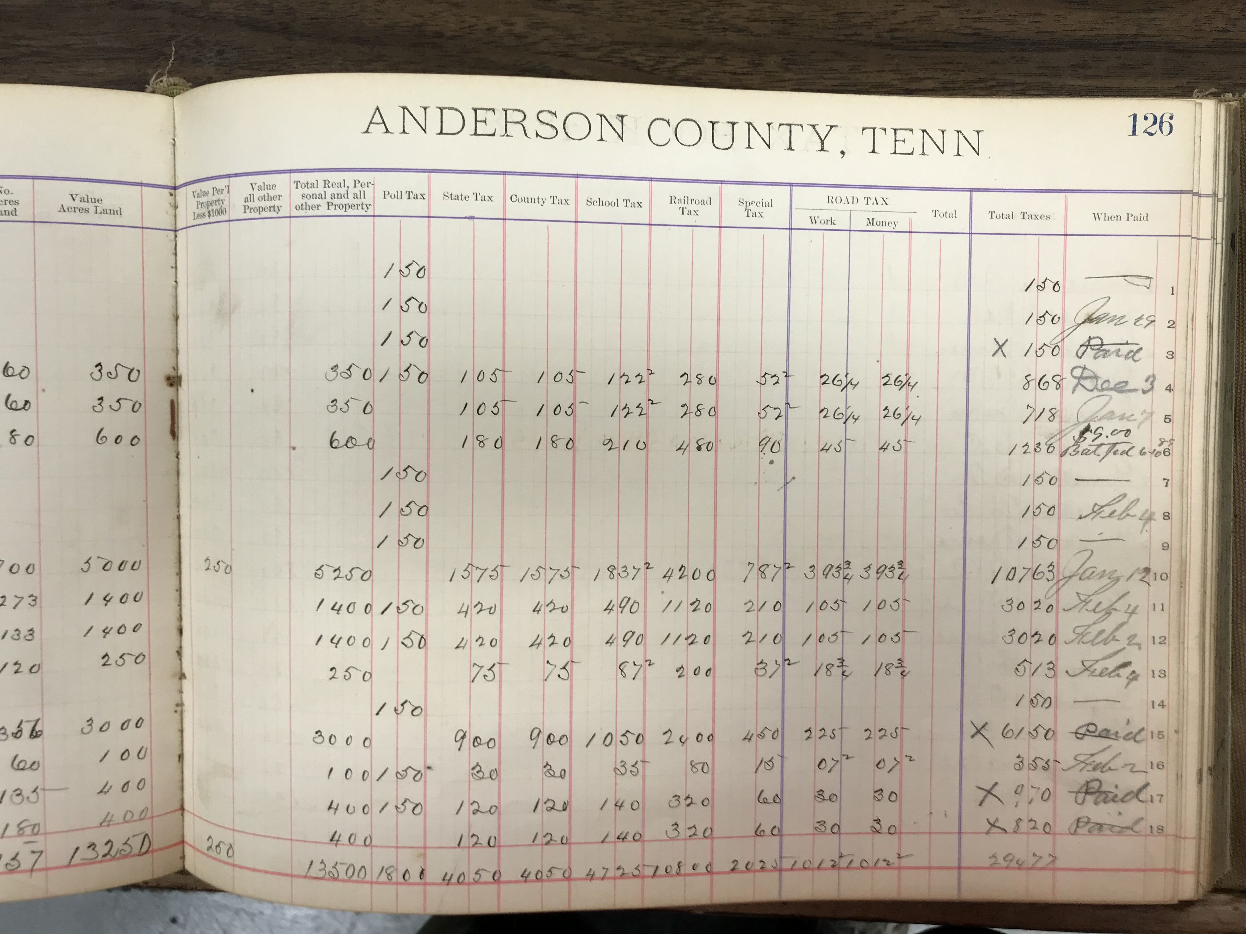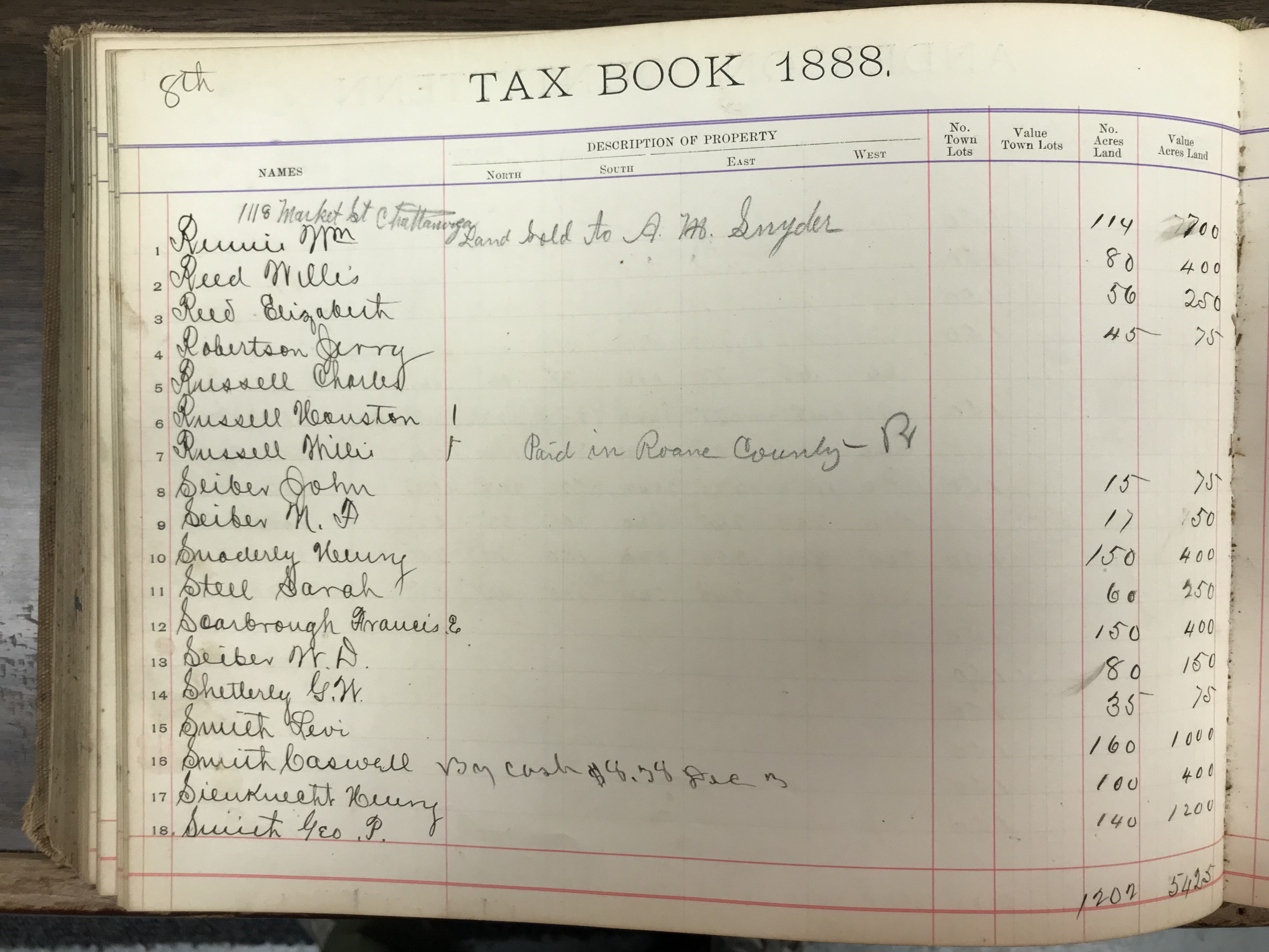 Anderson County, Tennessee, 1888 Tax Book, Dist. 8, page 126 (right) |