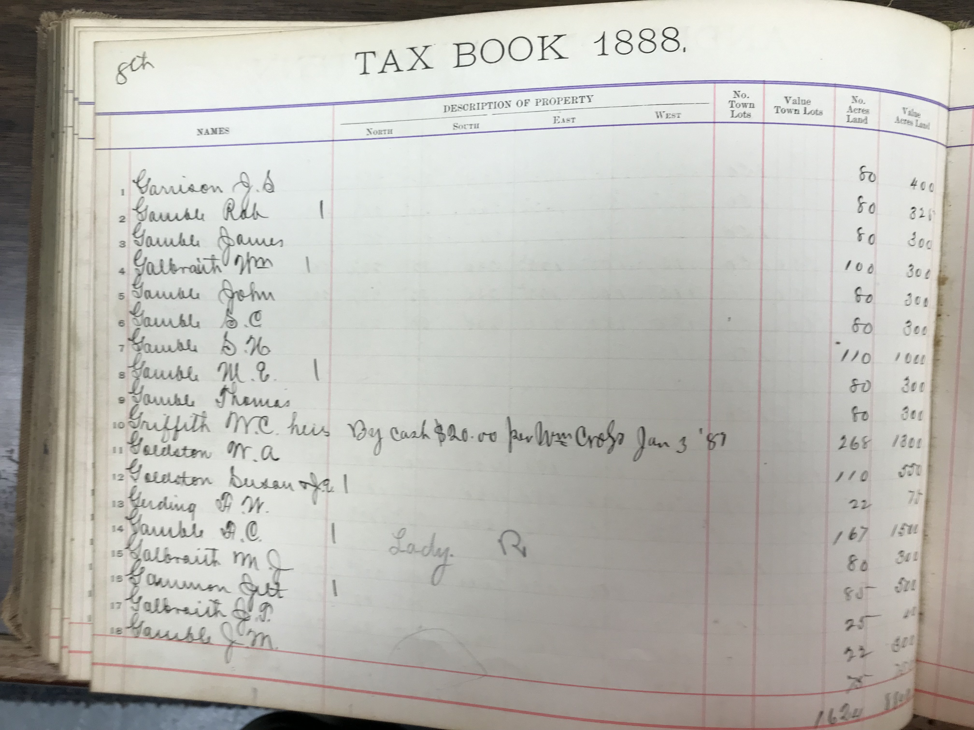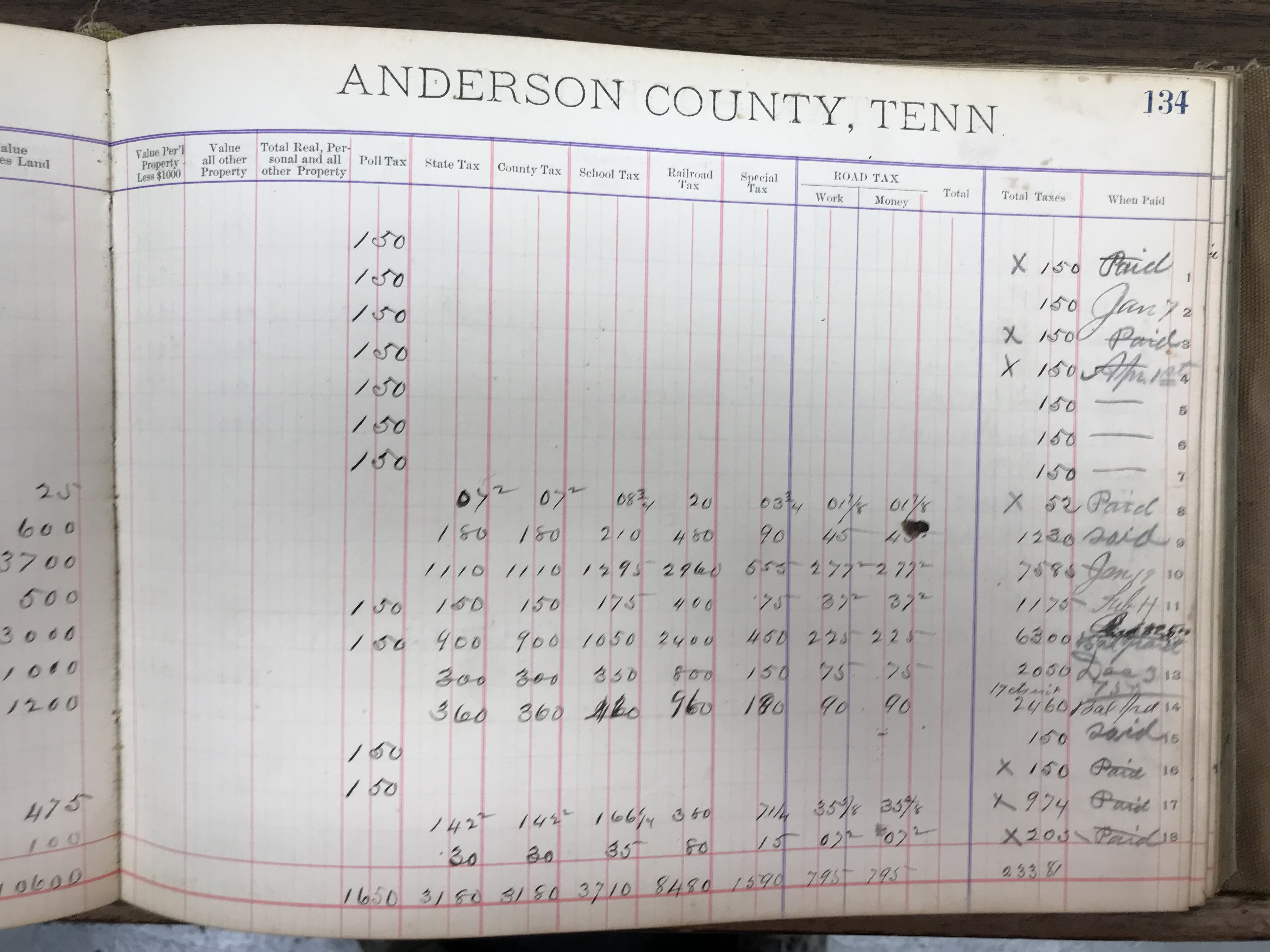 Anderson County, Tennessee, 1888 Tax Book, Dist. 8, page 134 (right) |