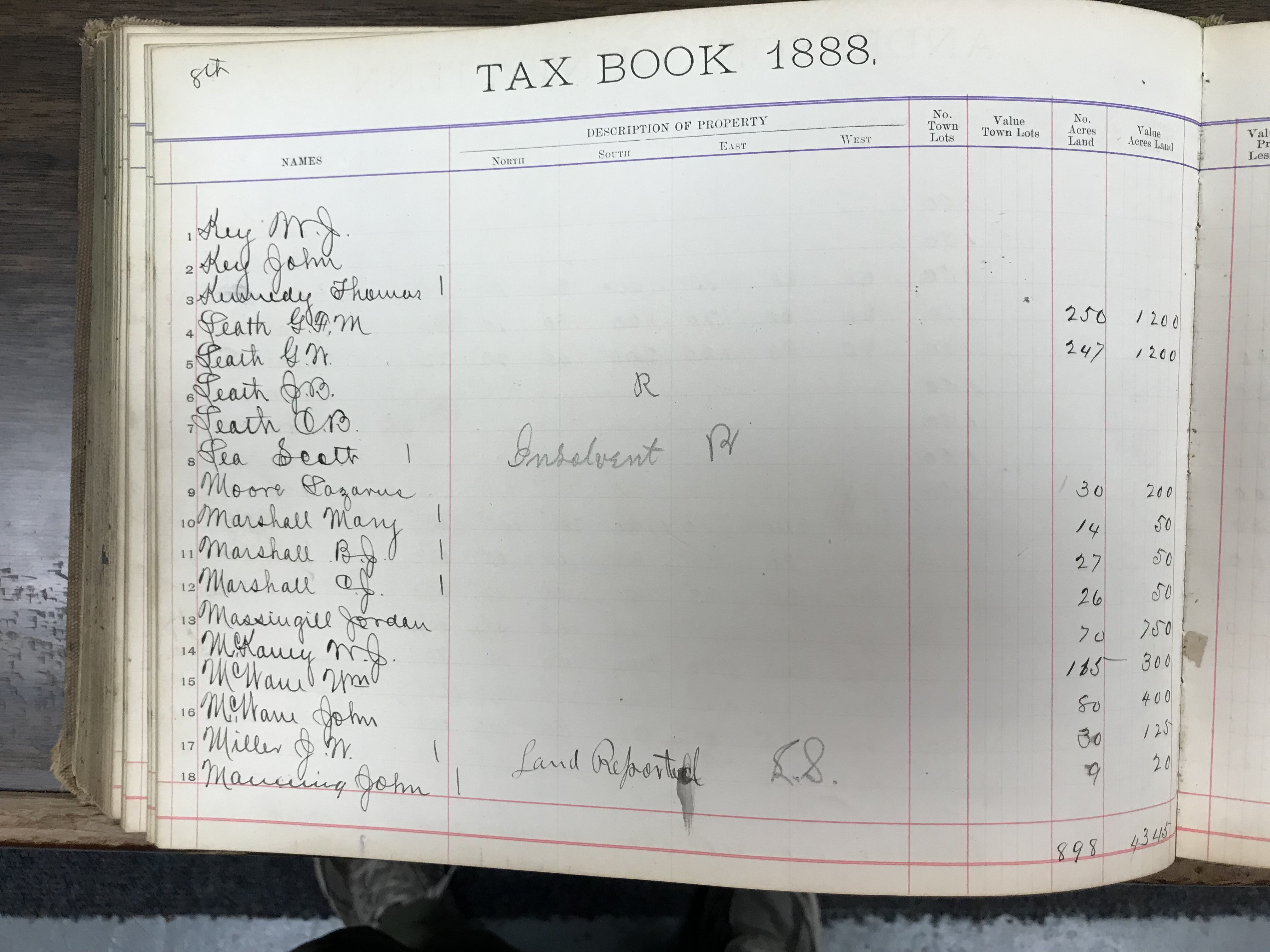 Anderson County, Tennessee, 1888 Tax Book, Dist. 8, page 128 (right) |