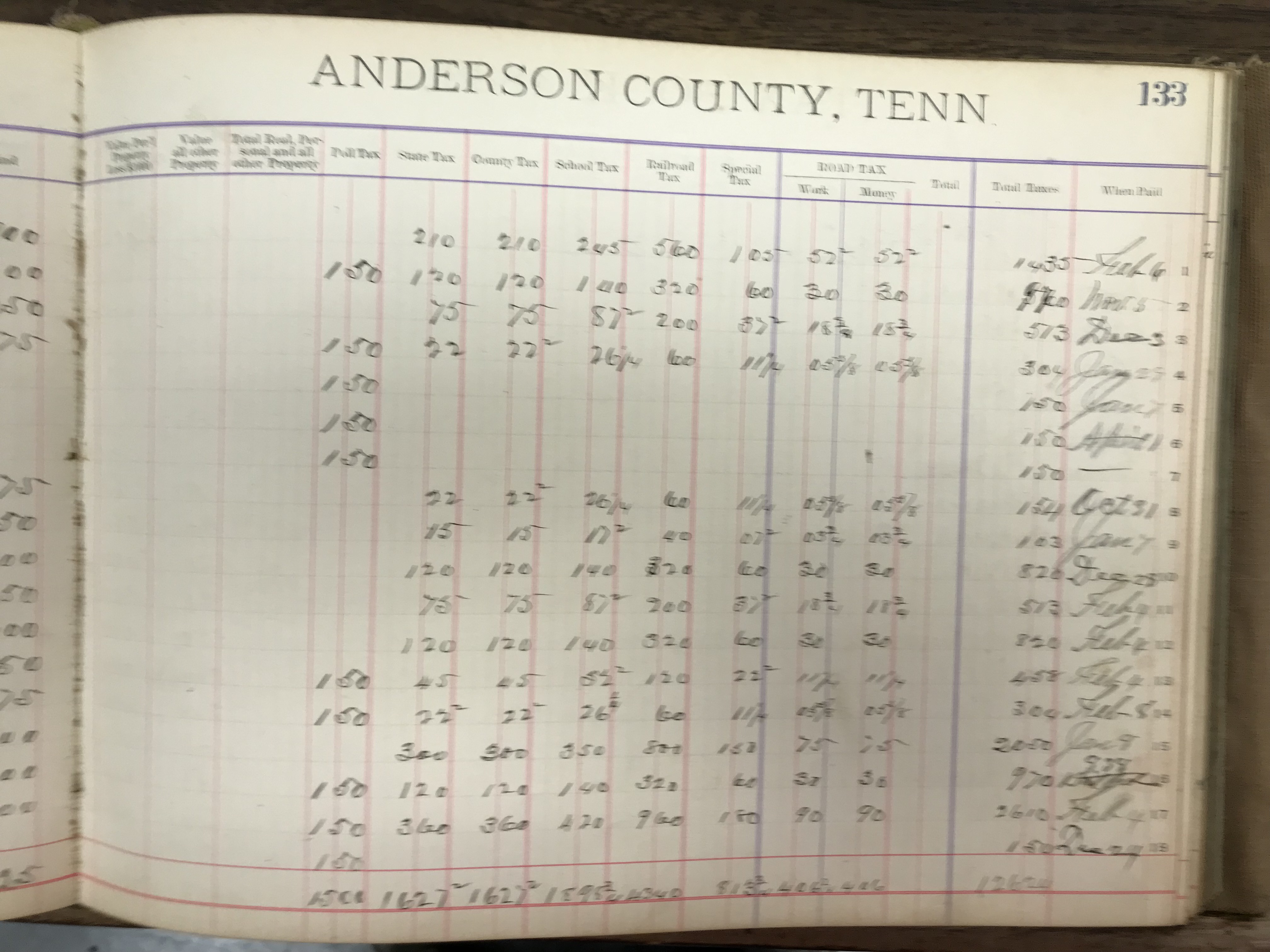 Anderson County, Tennessee, 1888 Tax Book, Dist. 8, page 133 (right) |