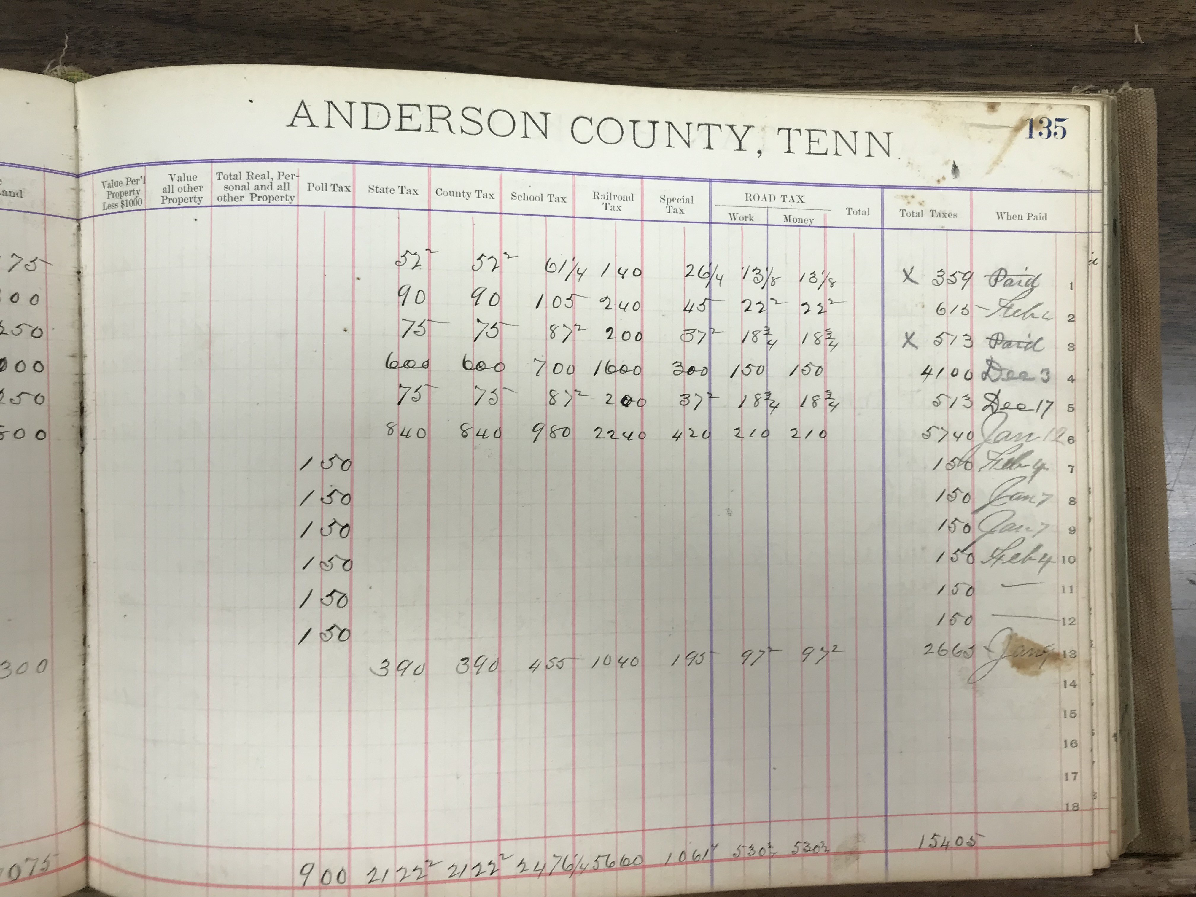 Anderson County, Tennessee, 1888 Tax Book, Dist. 8, page 135 (right) |