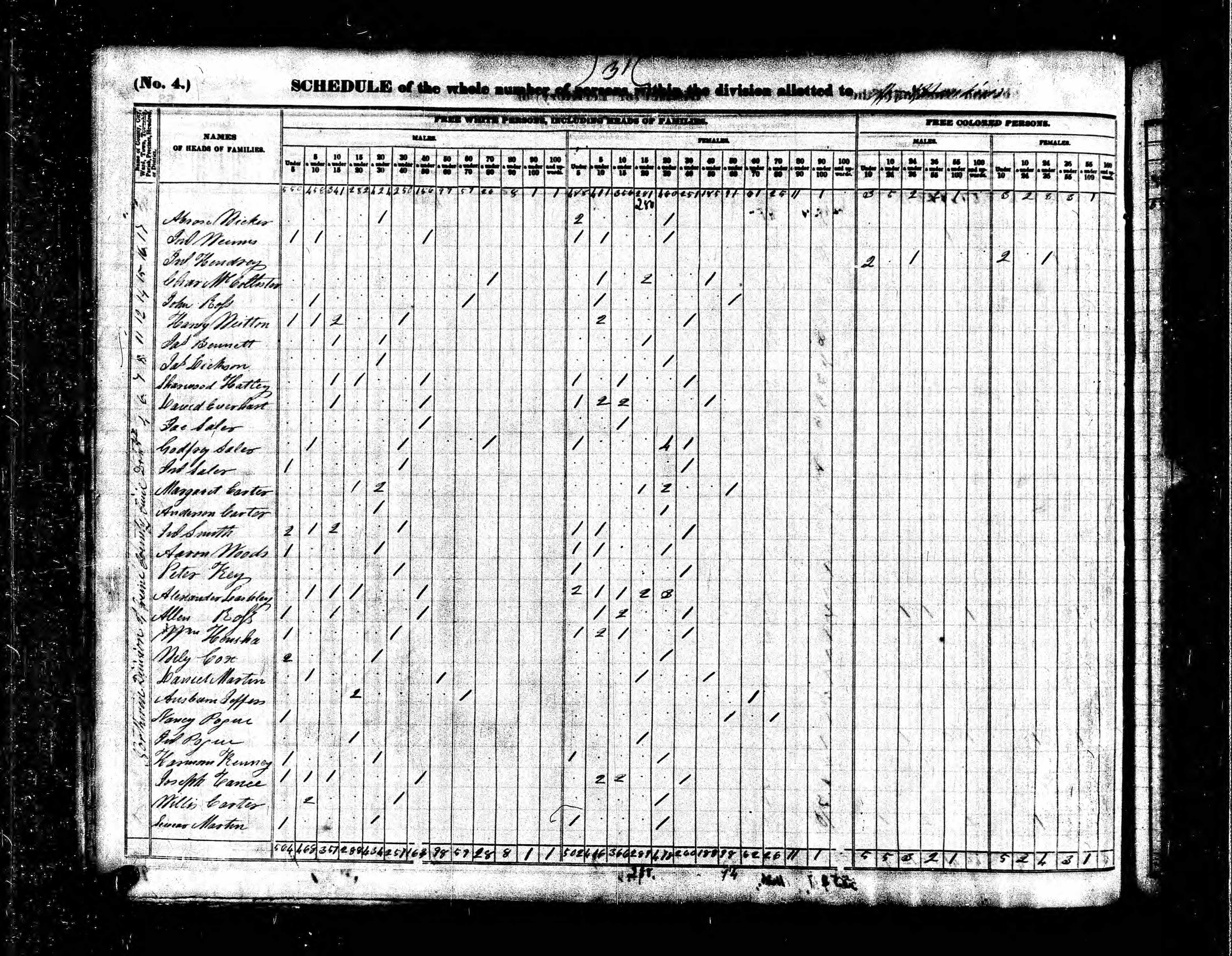 page 70a, line 6, Greene County, Tennessee, 1840 Smith Wheeler 10001-21001 00-04 1 2 1836-1840 Riley Wheeler, Martha Wheeler 05-09 0 1 1831-1835 Sarah Jane (Sallie) Wheeler 10-14 0 0 1826-1830 15-19 0 0 1821-1825 20-29 1 1 1811-1820 Smith Wheeler, Mary (Polly) Cox |