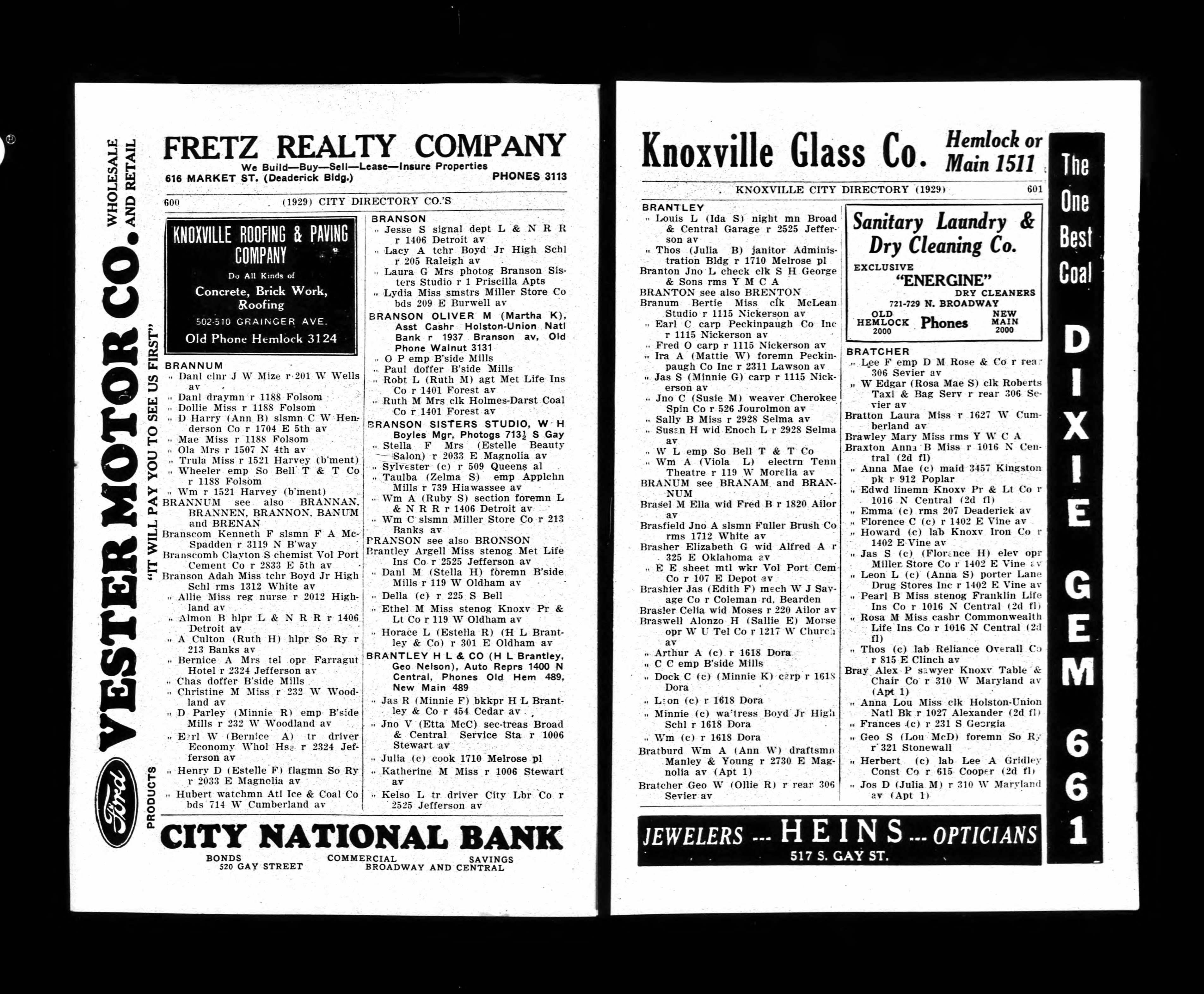 1929 Knoxville City Directory, pages 628-629, Bryan surname