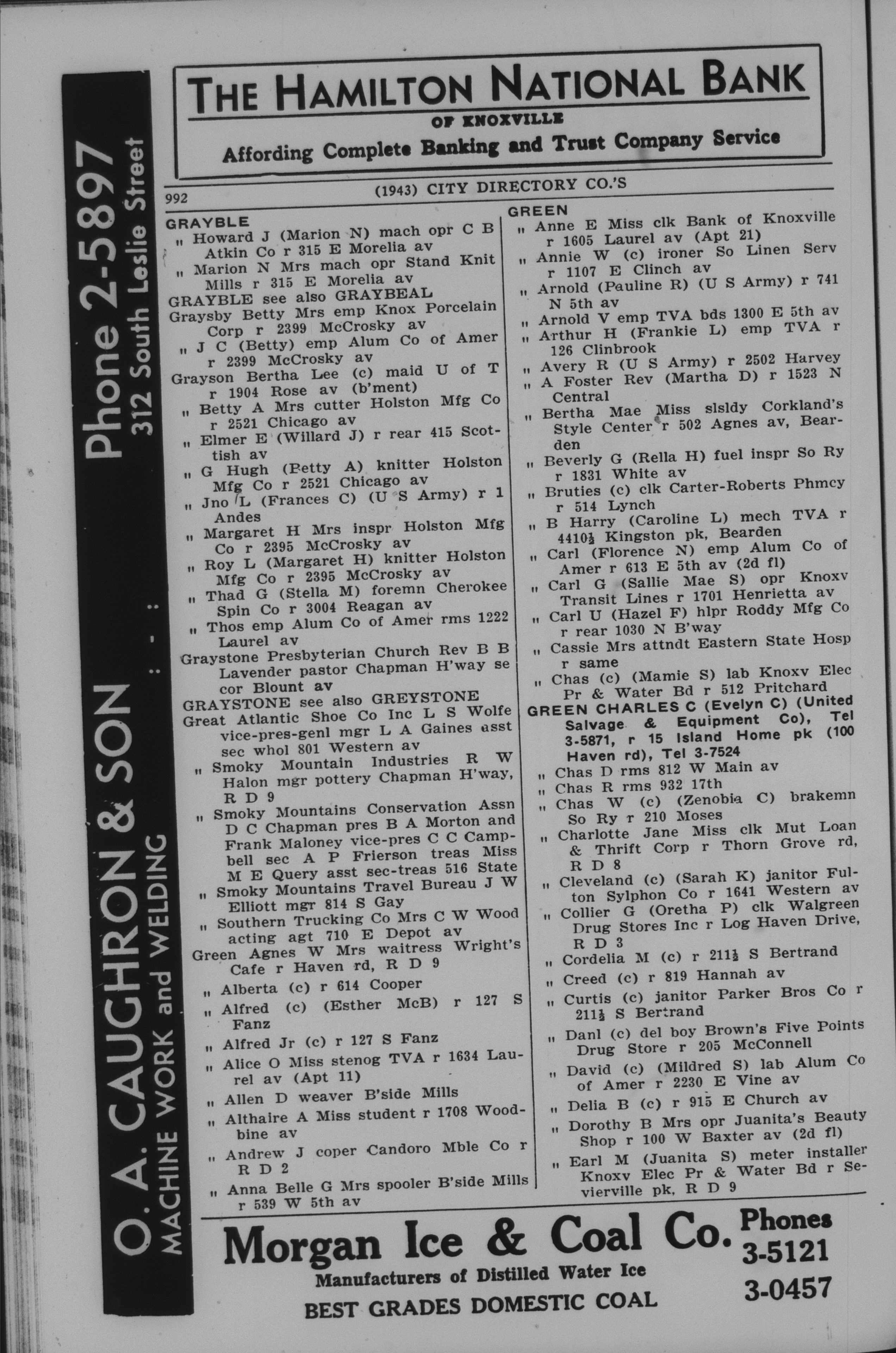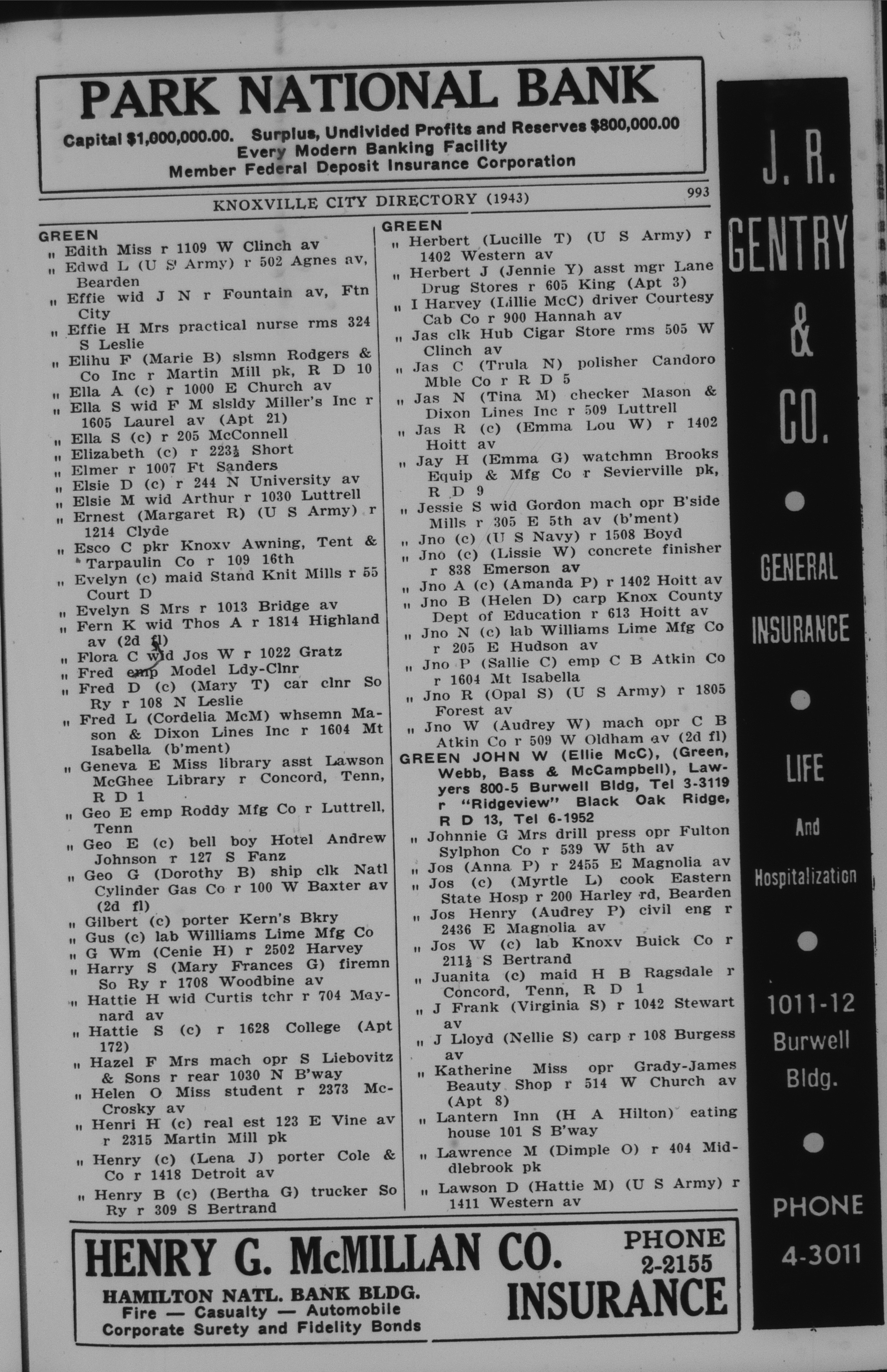 1943, City Directory, Knoxville, Tennessee, page 993Green surname |
